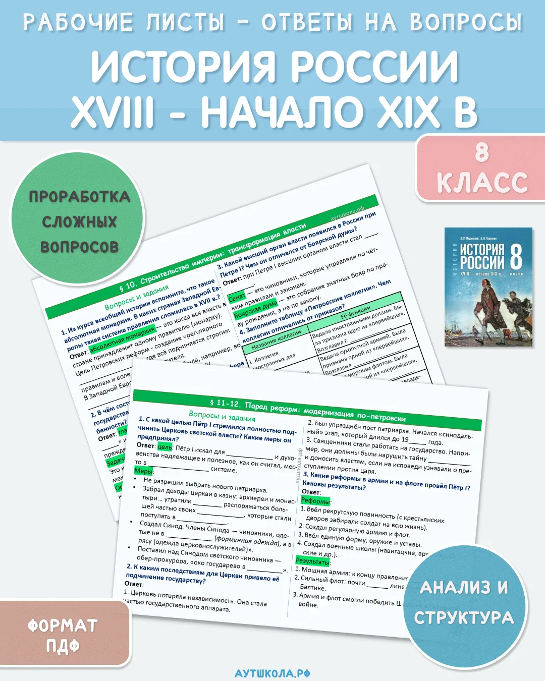 📚 История России, 8 класс - рабочие листы к вопросам параграфов учебника - добавлены новые параграфы