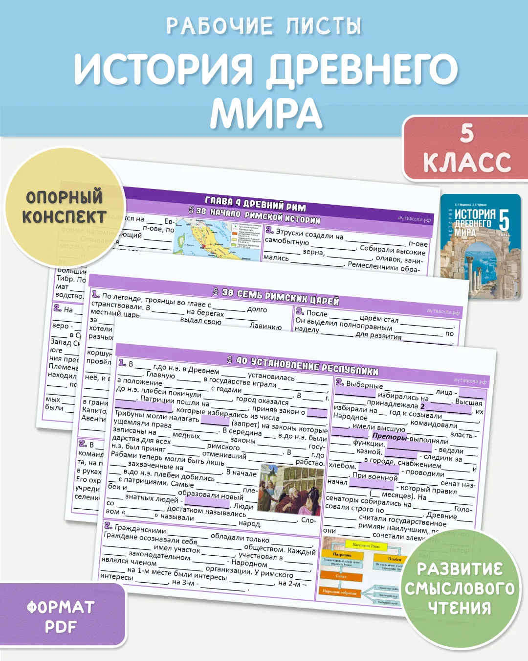 📚🏺 История Древнего мира, 5 класс - рабочие листы в формате конспекта - добавлены новые параграфы