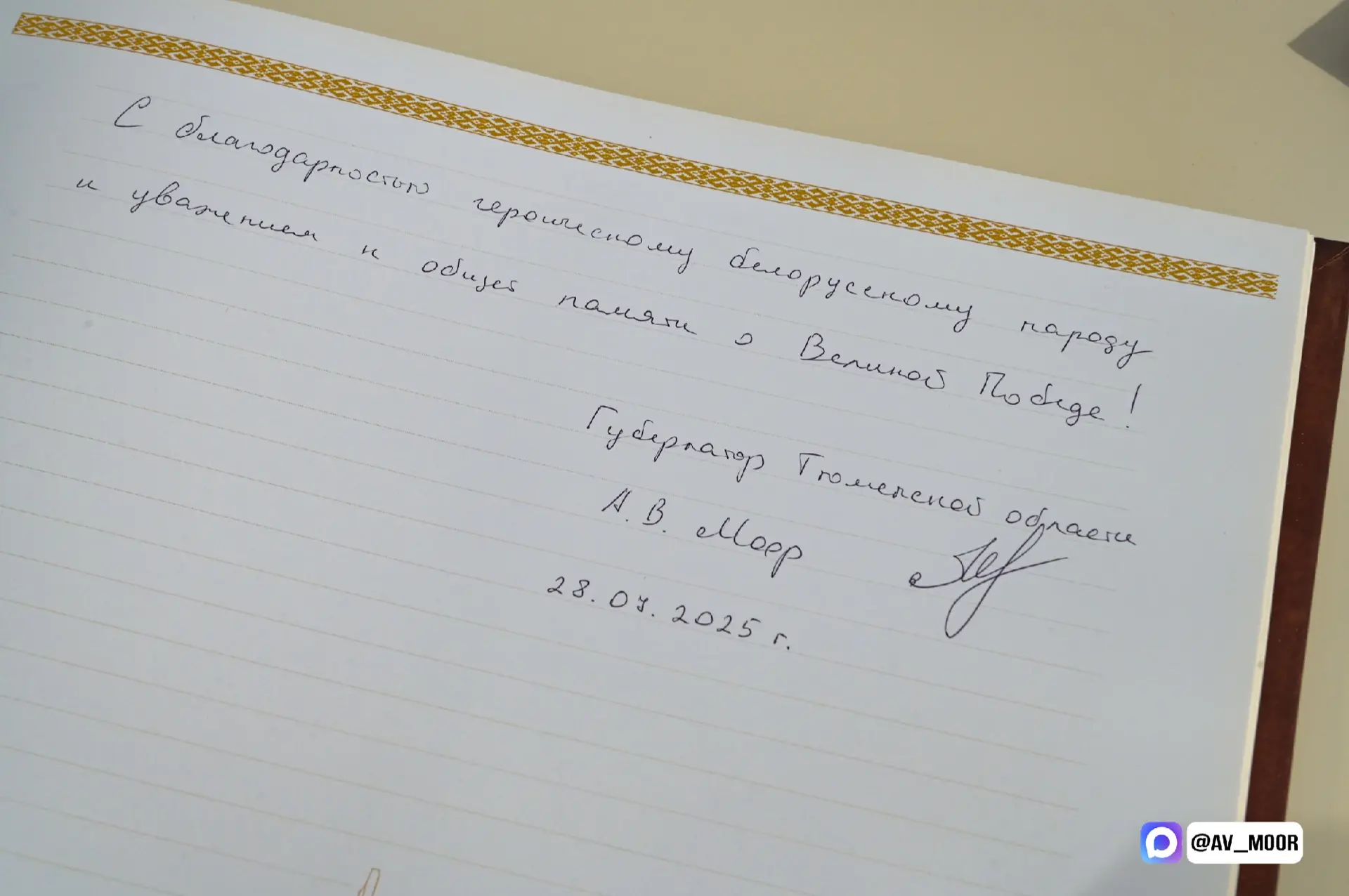 С уважением, губернатор Тюменской области, Александр Моор.