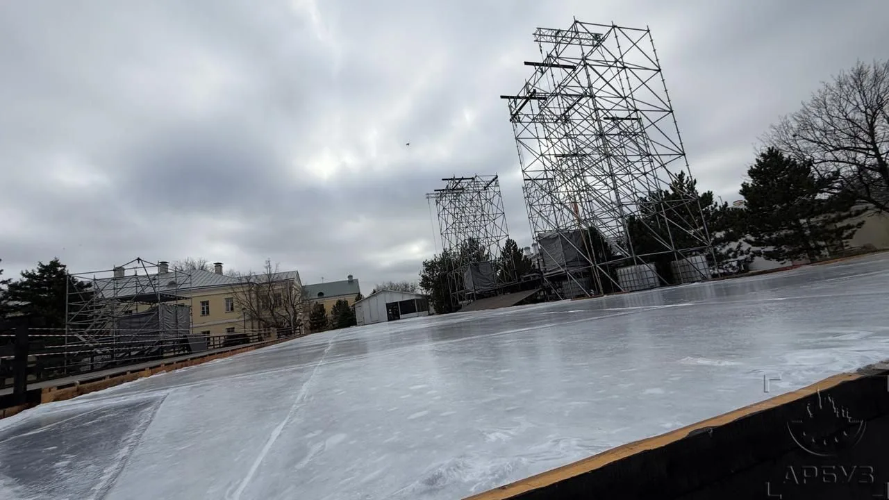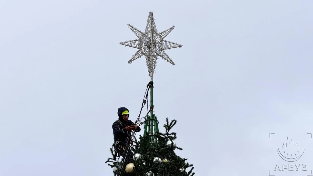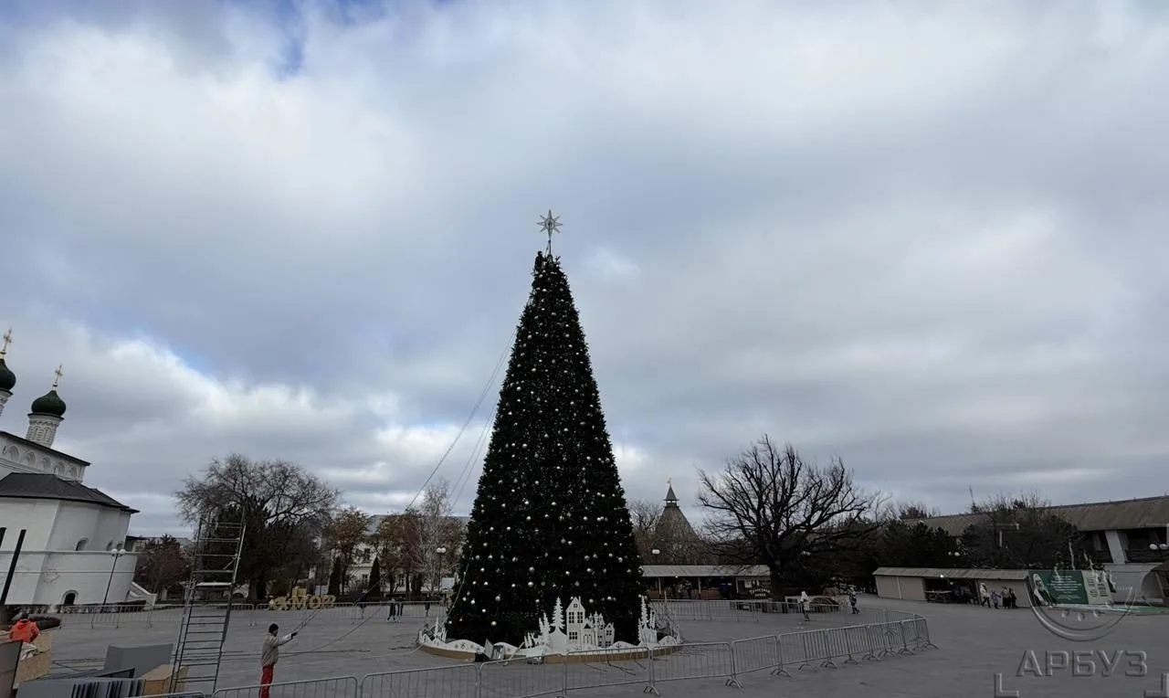 В Астраханском кремле установили ёлку и залили каток. Момент установки звезды сфотографировал корреспондент «Арбуза».