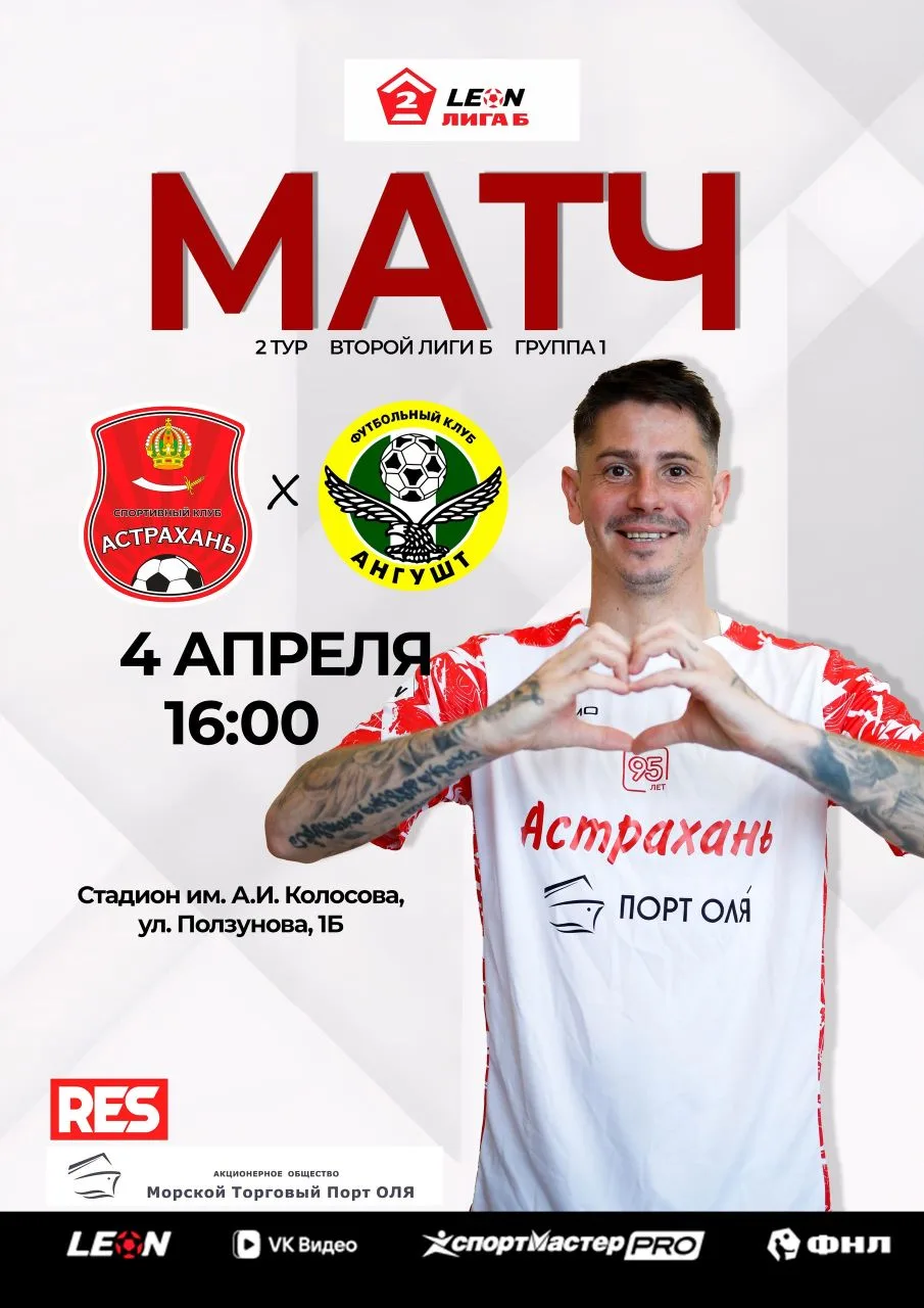 В субботу, 4 апреля, в 16:00 стадион им. Колосова снова в деле — СК «Астрахань» во втором туре принимает ФК «Ангушт».