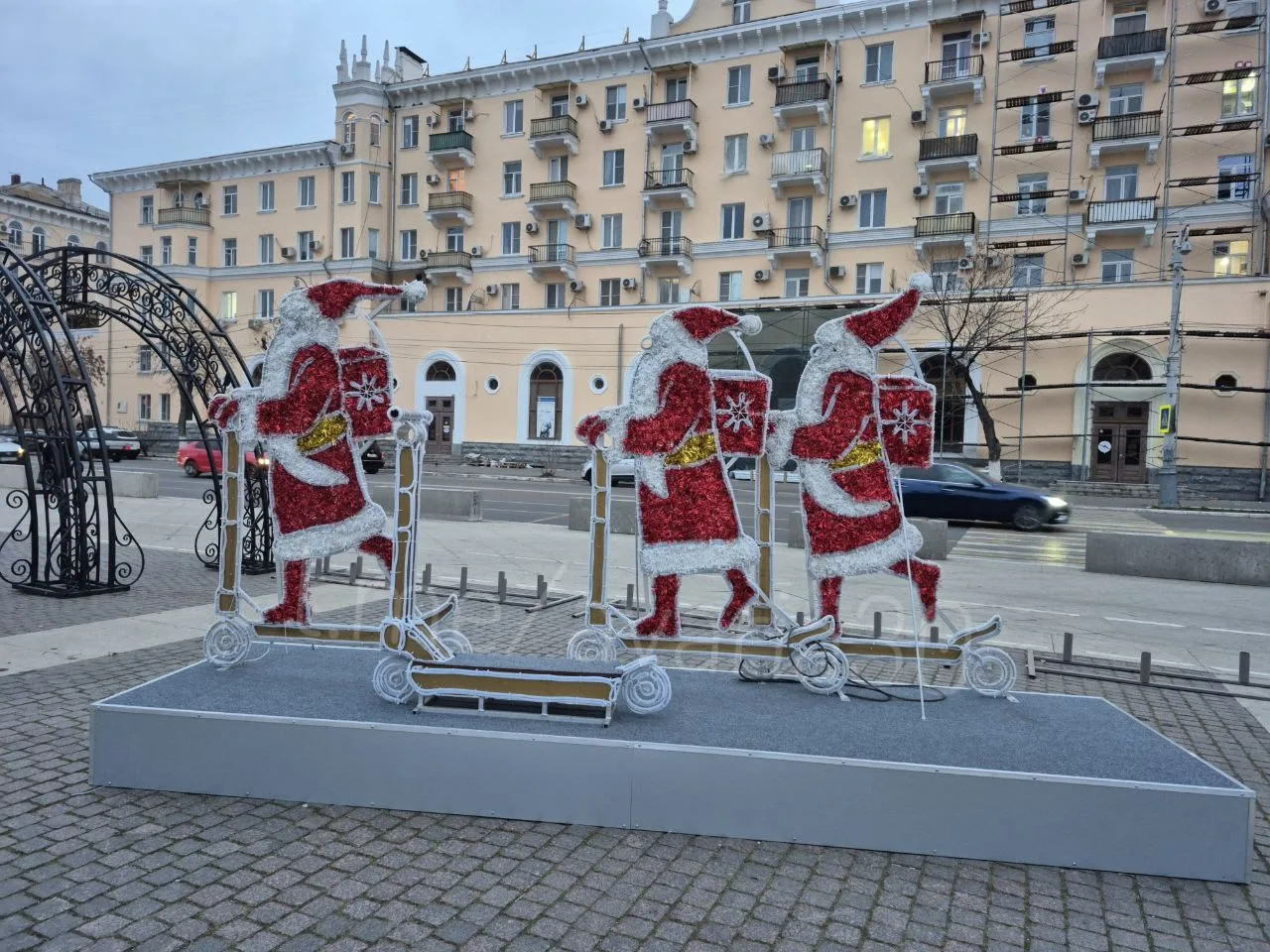 На новогодних площадках города появились световые фигуры Дедов Морозов, в том числе композиция с персонажами на самокатах, установленная на площади в центре. Инсталляции уже стали фоном для фотографий горожан и мемов в соцсетях о «нарушающих правила» зимних волшебниках.