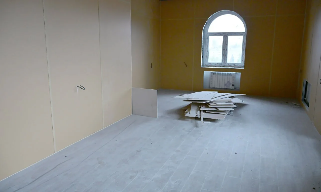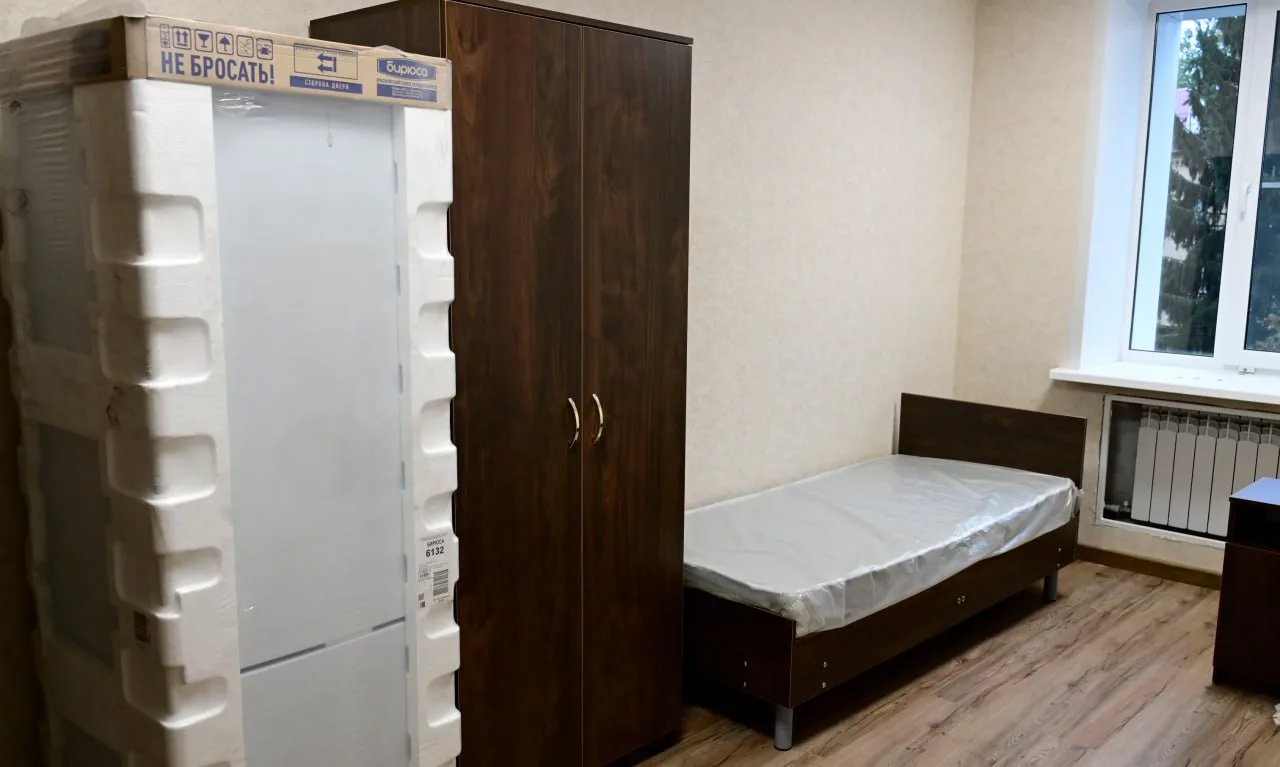 В общежитии уже готовы все комнаты, устанавливается мебель, бытовая техника.