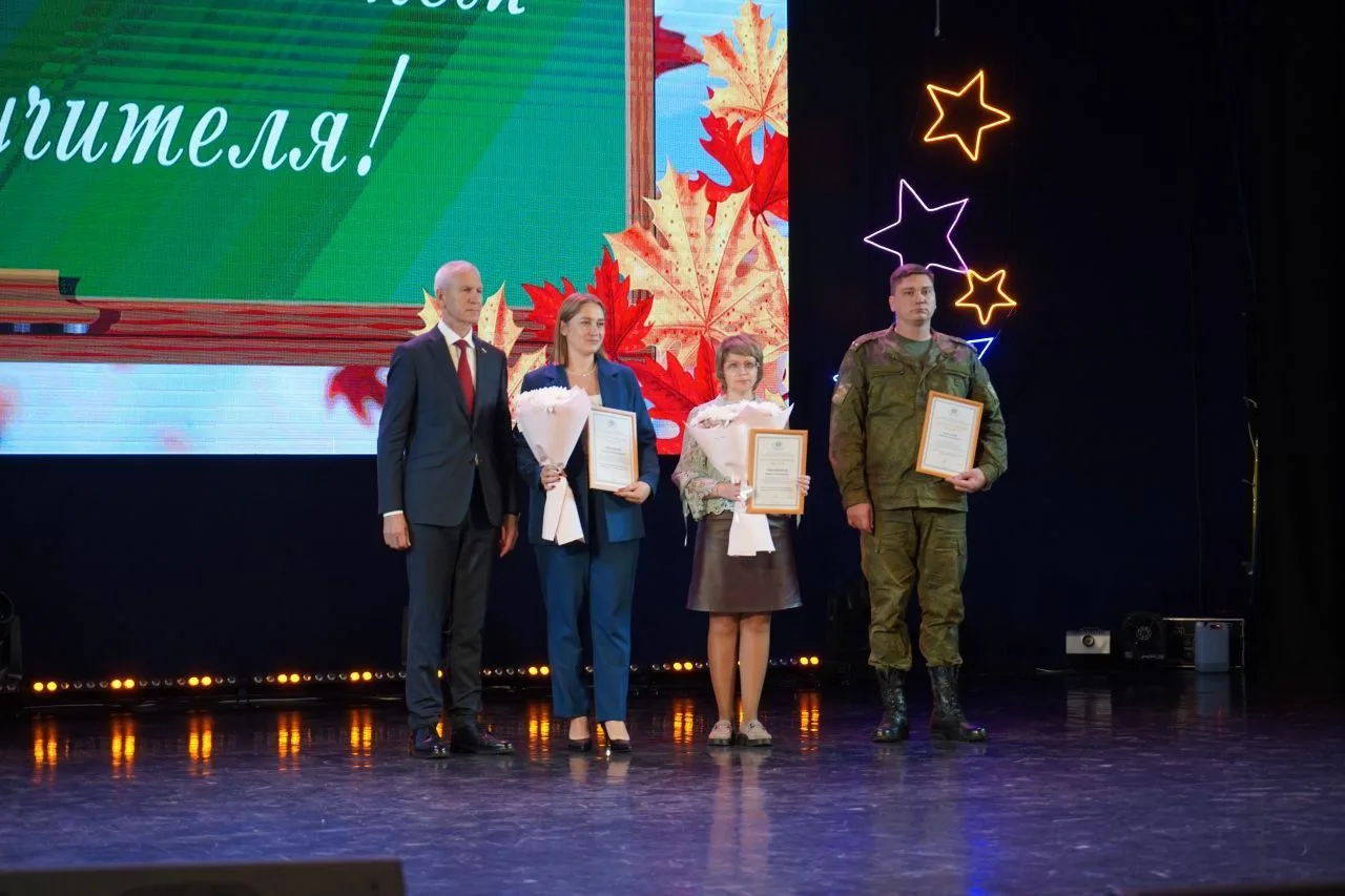 Именно ваши ученики, когда позвала Родина, с оружием в руках встали на защиту страны, Брянской области, на защиту всего, что для нас дорого и свято. Это ваши воспитанники сегодня проявляют истинный героизм на передовой, решая стратегические задачи специальной военной операции. Многие из них награждены орденами и медалями за мужество, самоотверженность и героизм. В их подвиге есть частица и вашего бескорыстного труда. Низкий вам поклон от всех нас! Мы вас искренне любим и ценим!