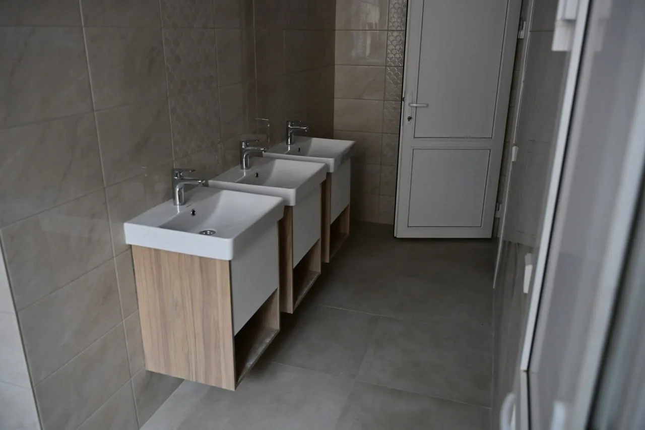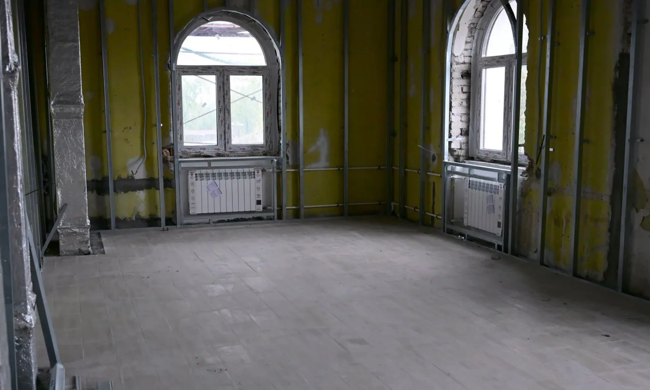 Во всем здании учебного корпуса идет чистовая отделка. Четвертый этаж уже через две недели будет готов — работы ведутся с верхних этажей здания. На всех этажах работают бригады в усиленном темпе. В декабре все четыре этажа планируется сдать, чтобы студенты уже могли заниматься в собственном здании.