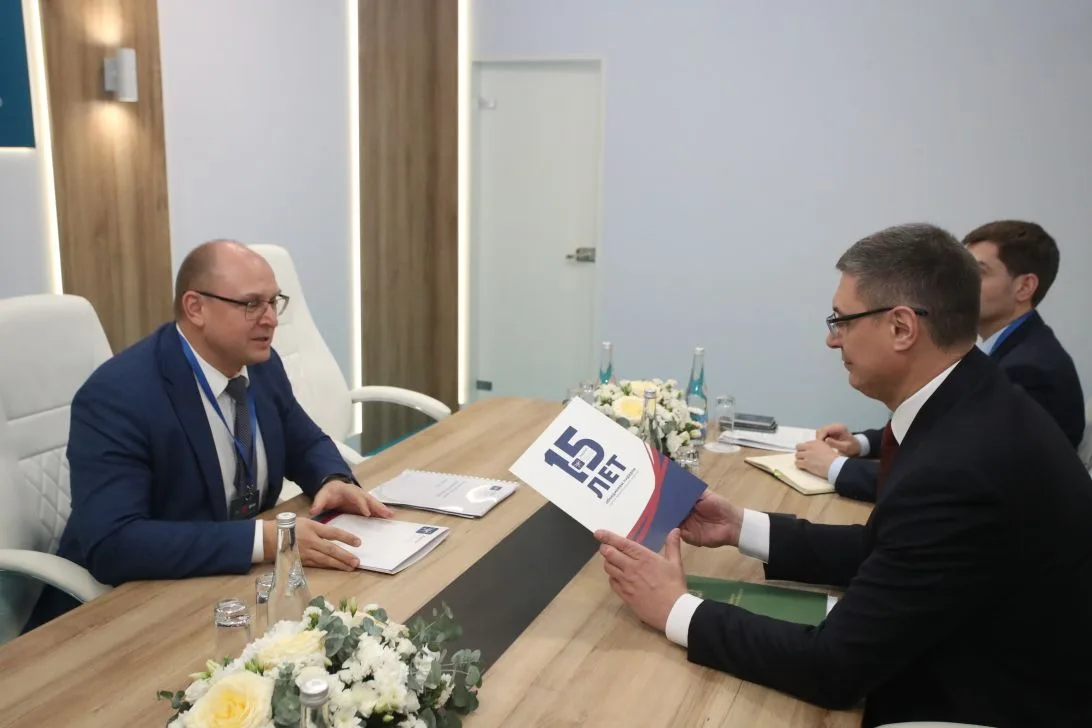 📍На форуме провели рабочую встречу с вице-президентом АО «ТБАНК» Олегом Щербаковым. Обсудили ход реализации проекта «Т-ЦОД» в особой экономической зоне «Доброград - 1».