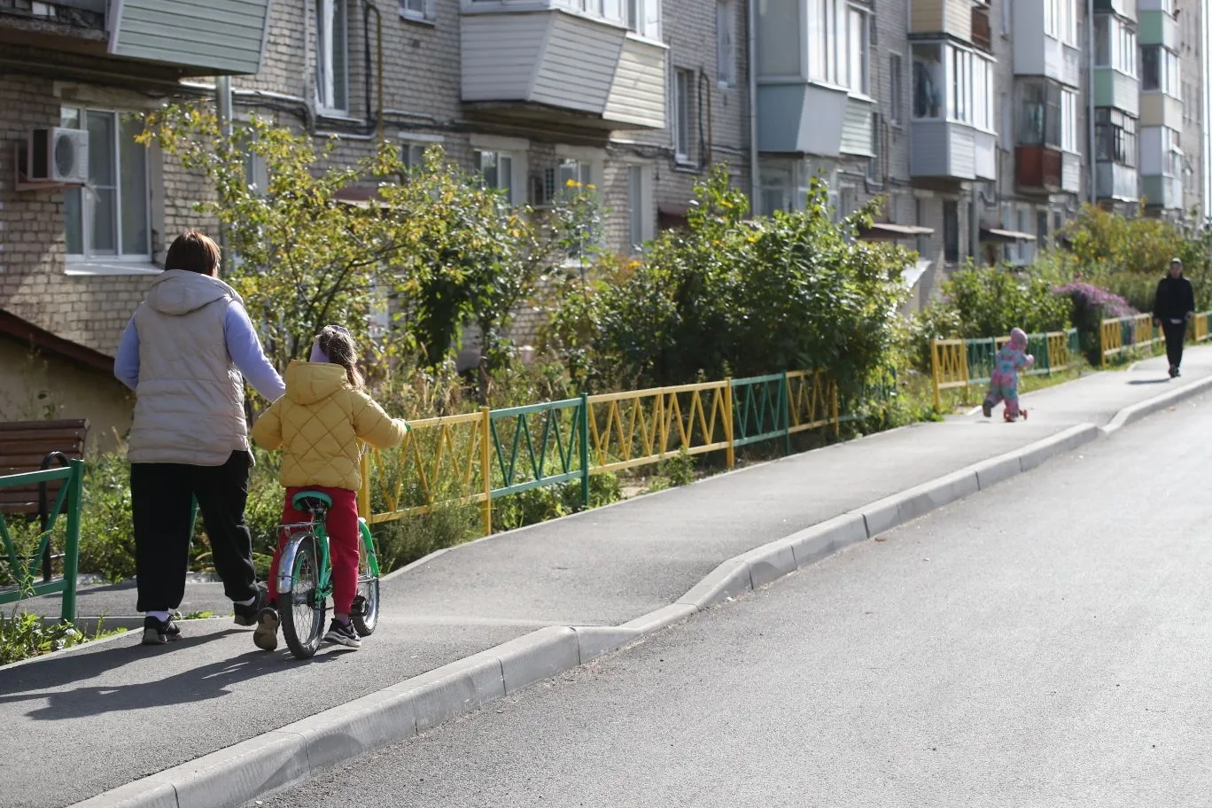 С центральной улицы заглянул и во двор. Новый асфальт, тротуары, места для парковки, скамейки - результат областной программы «Благодвор». Перемены к лучшему положительно оценивают и жители, с которыми пообщался в ходе поездки. Люди дают советы, просят делать для детей спортивные площадки.