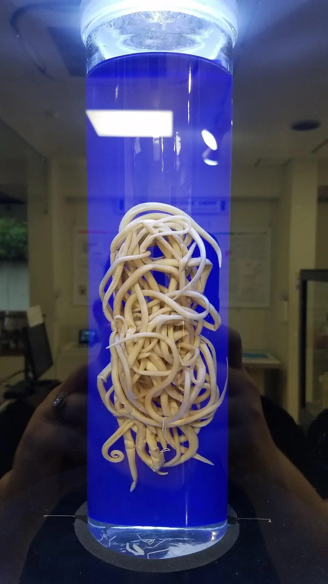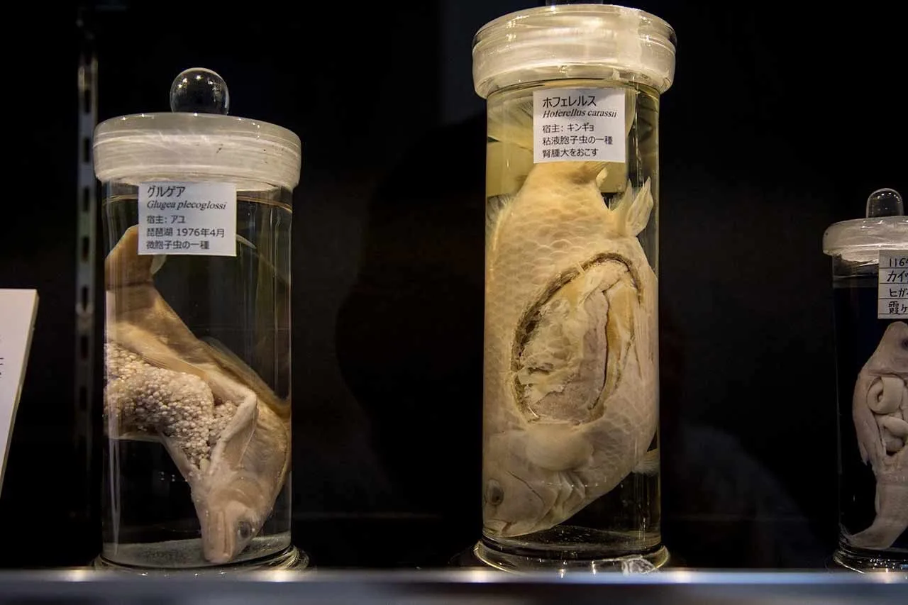 В Токио есть Музей паразитологии. Здесь собрано 60 000 образцов, но все едут ради одной звезды. Это 9-метровый ленточный червь. Он вырос внутри обычного мужчины всего за три месяца после обеда с форелью.
