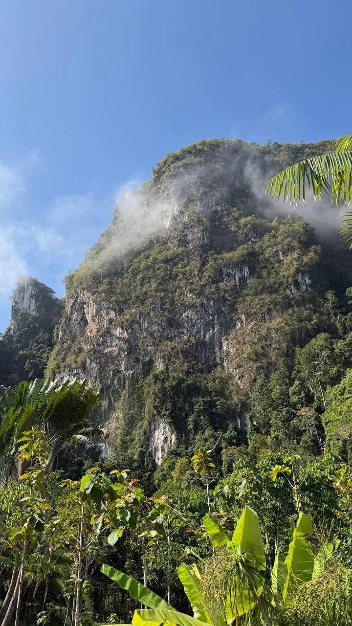 Гладкие валуны выныривают из джунглей, словно контент-менеджер с зарплатой в 30 000 рублей сгенерировал это в нейросети, чтобы выдать подписчикам в соцсети за реальность.