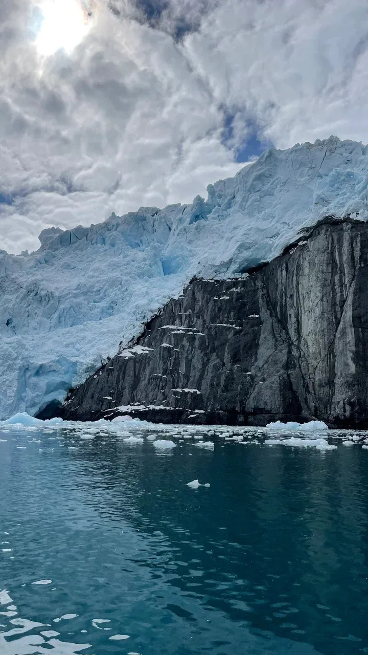 Итак, начнём. Путь туда — это отдельное испытание. Два дня в самолетах, пять пересадок через полмира: Москва, Стамбул, Сан-Паулу, Сантьяго... Финальный рывок из Пунта-Аренаса мы делали на самолете, который был целиком раскрашен под пингвина. Даже еду на борту давали в ланч-боксах с пингвинчиками. Это казалось милой шуткой, пока под крылом не поплыли первые айсберги — огромные, архитектурно выверенные и пугающе синие.