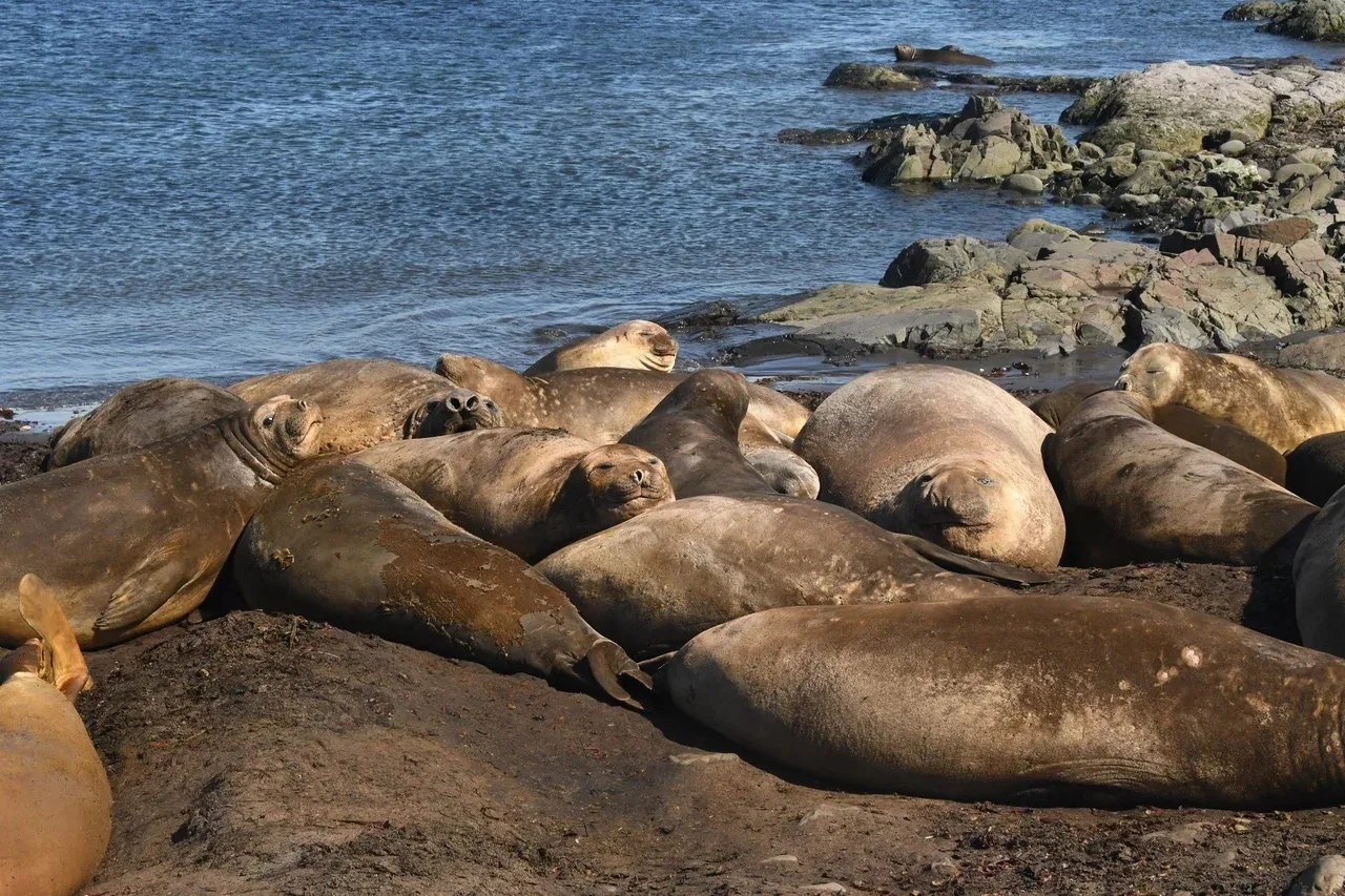 🔹Морские слоны: Сейчас у них время линьки. Они собираются огромными группами на берегу и выглядят как горы живого, шумного и не самого приятно пахнущего мяса.