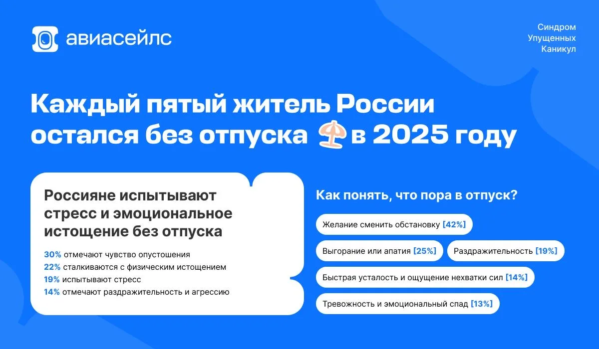 Он говорит: ты знаешь, Иннокентий, дело такое. Каждый пятый житель России остался без отпуска в 2025 году. С каждым годом эта цифра растёт. А люди всё больше испытывают нервное истощение. Именно поэтому ещё в 2023 году Авиасейлс учредил День осведомлённости о синдроме упущенных каникул, который отмечается ежегодно 30 марта.