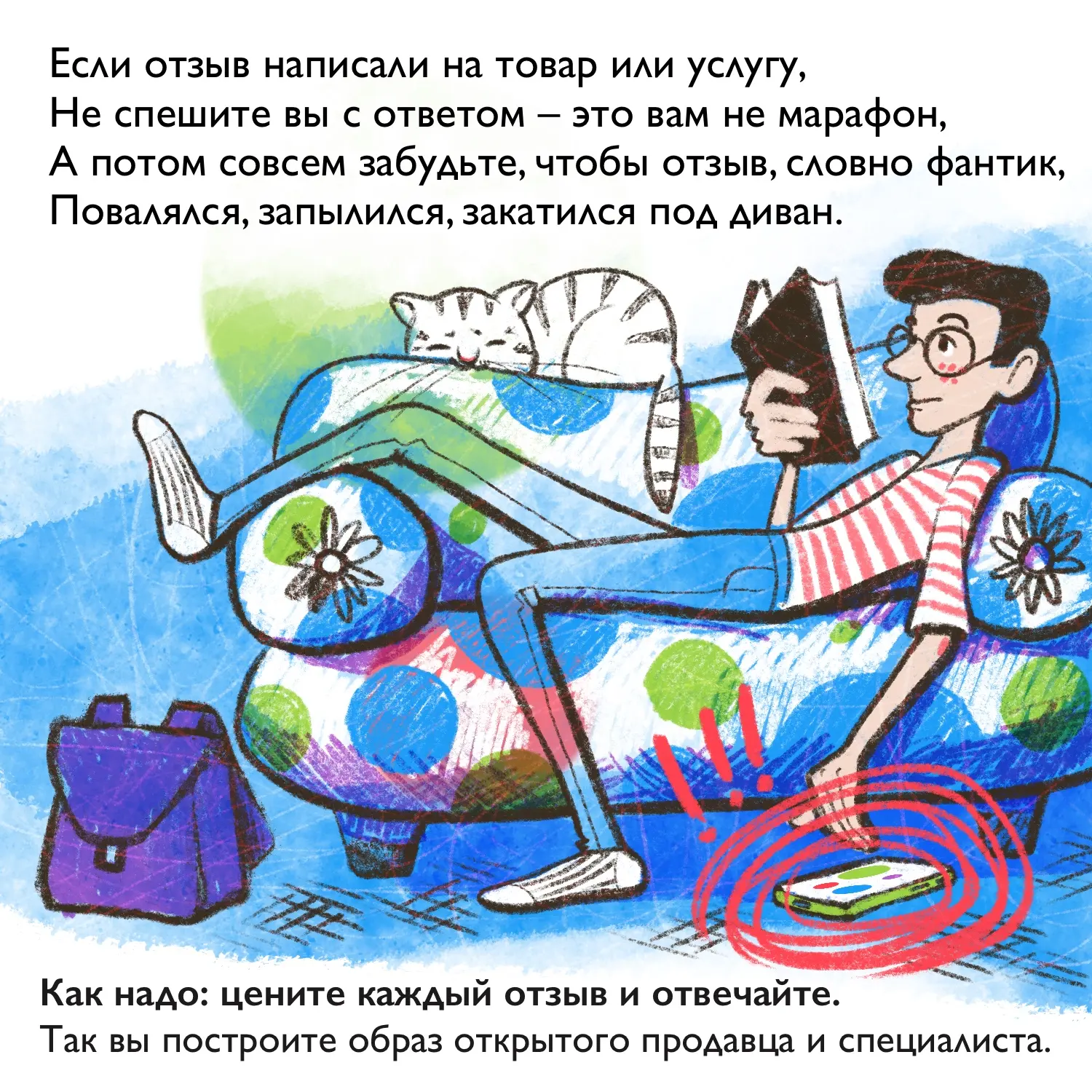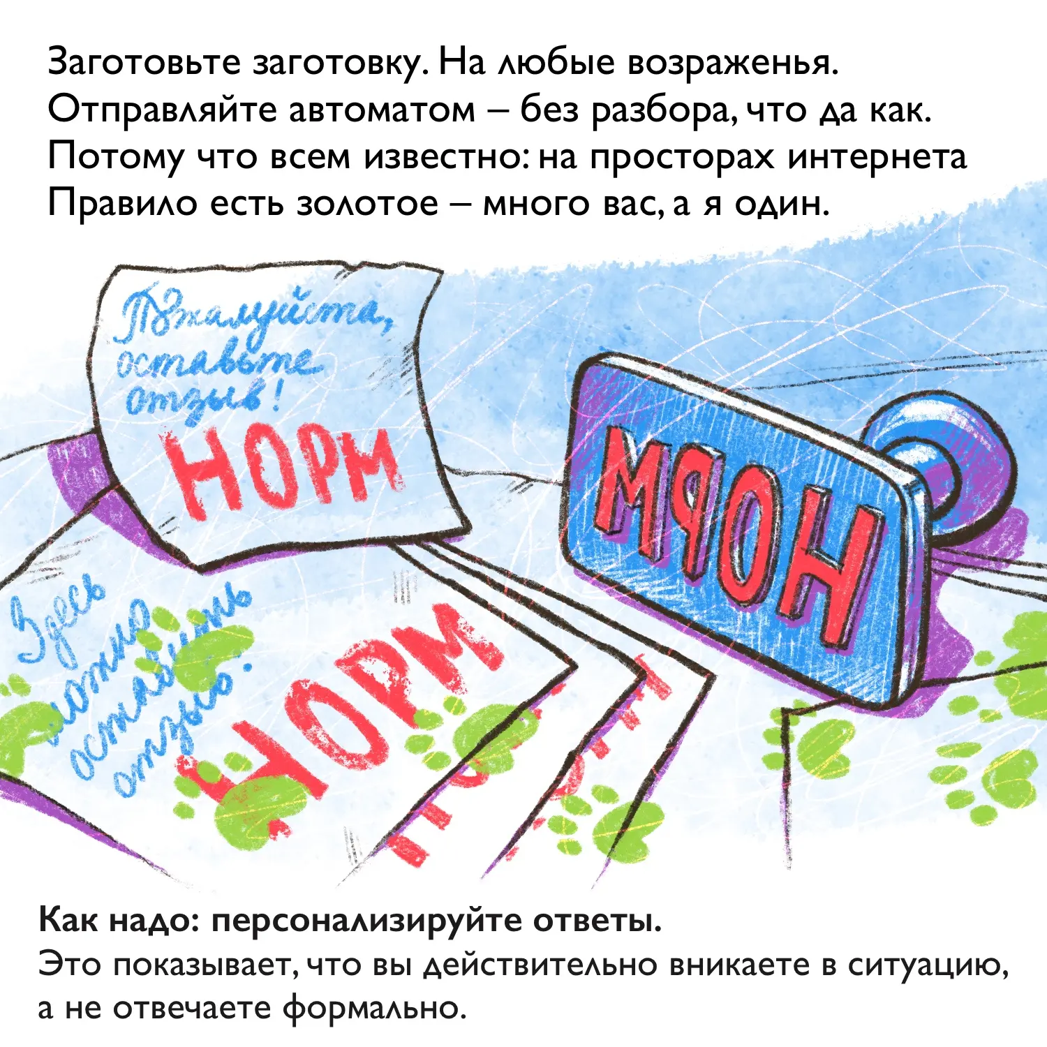 В карточках рассказываем, что делать, если написали несправедливый отзыв, и как работать с негативом в комментариях.