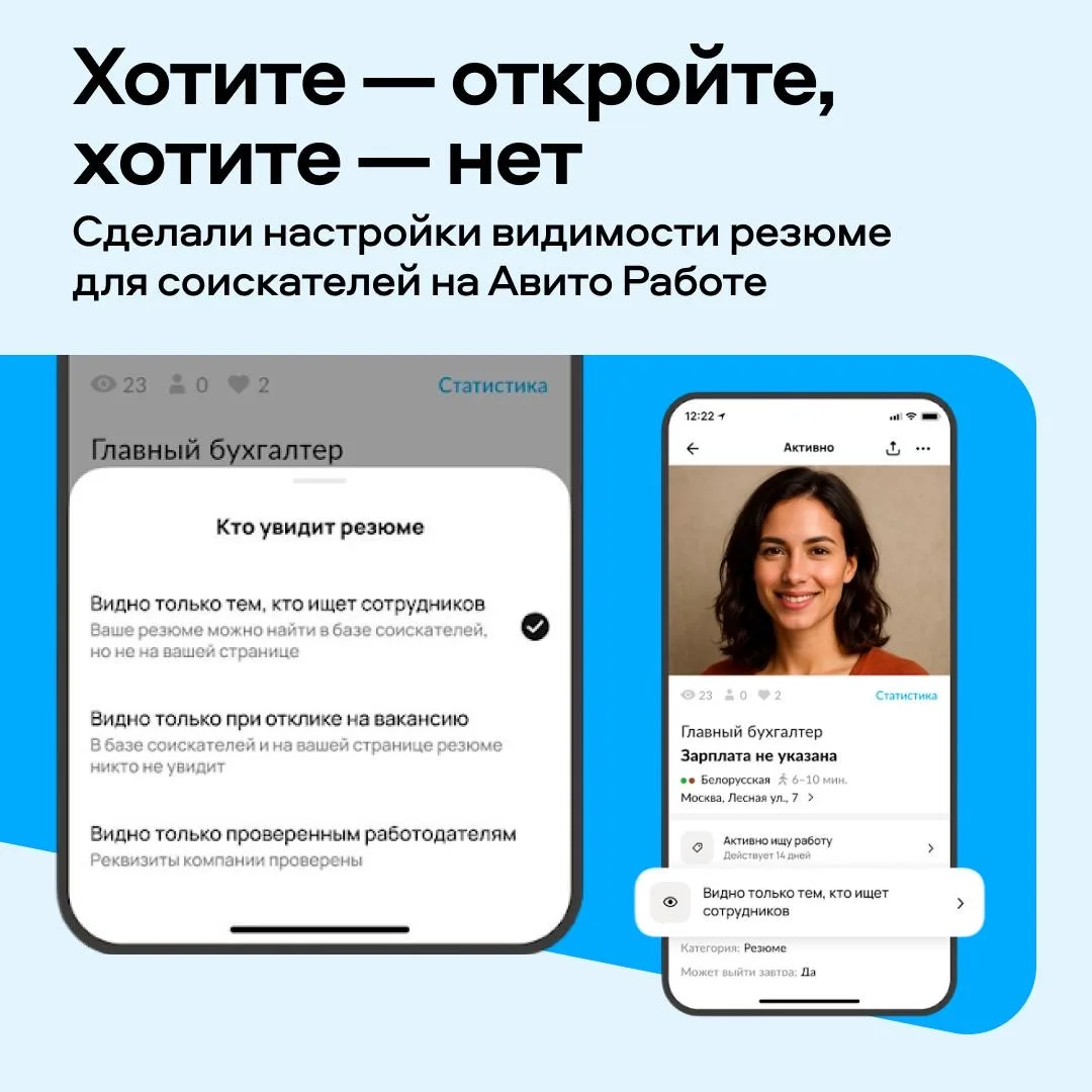 Авито Работа запустила новую функцию для защиты данных соискателей. Теперь вы сами решаете, кто может просматривать ваше резюме 👀