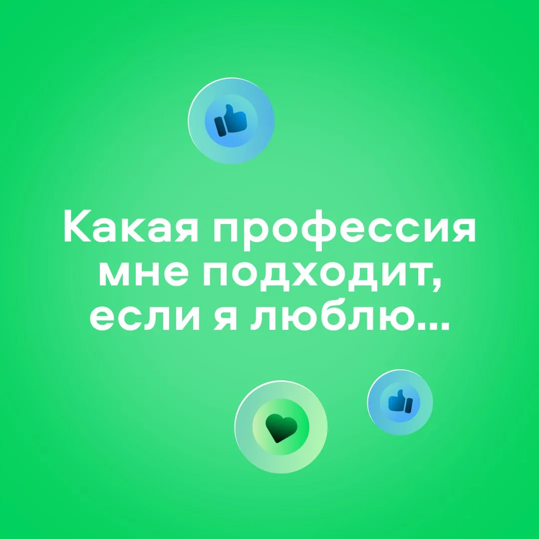 А если вы ещё не решили, кем хотите стать, когда вырастете, то листайте карточки. В них подсказываем, какая профессия может вам подойти исходя из ваших интересов.