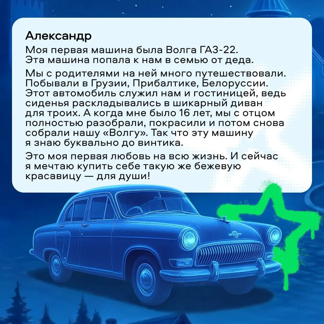 Это может быть любое воспоминание, которое греет душу, или рассказ о том, что вы ощутили, когда впервые сели за его руль.