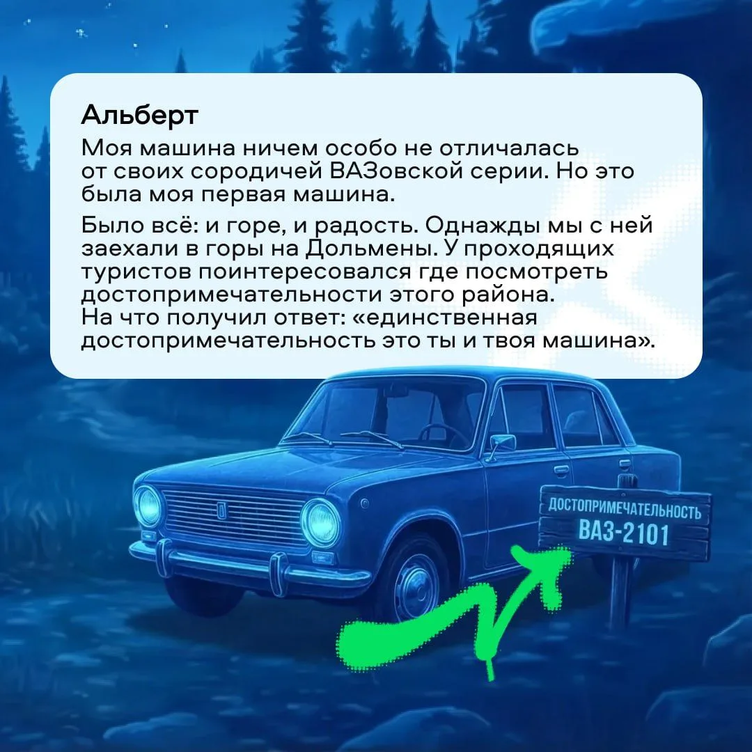 На сайте проекта уже собраны километры хороших историй от блогеров и других автолюбителей. В карточках собрали несколько их них. Читайте и вдохновляйтесь!