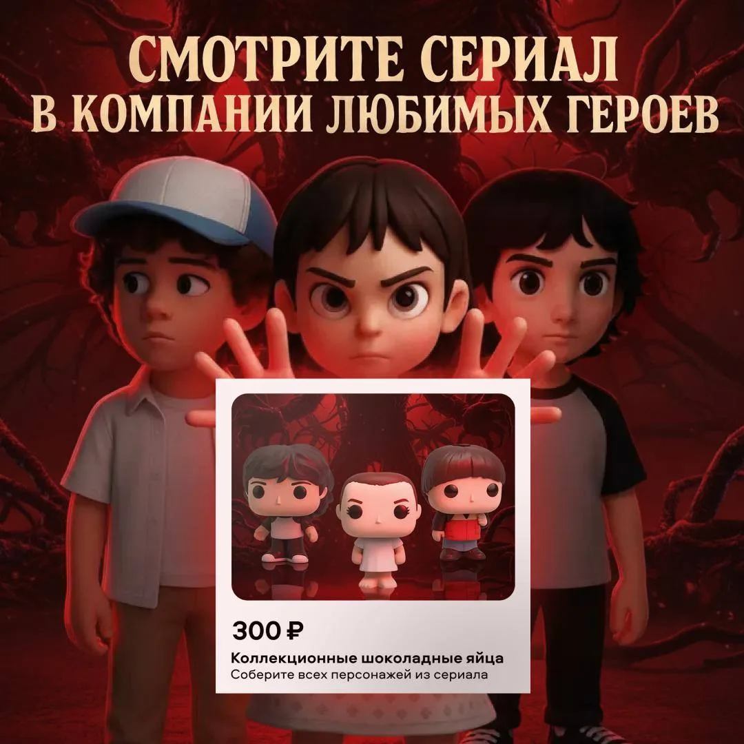Чтобы пережить финальную битву, вам понадобятся не только стальные нервы, но и поддержка всей команды из Хоукинса. Специально к премьере Киндер создал фигурки всех героев сериала.