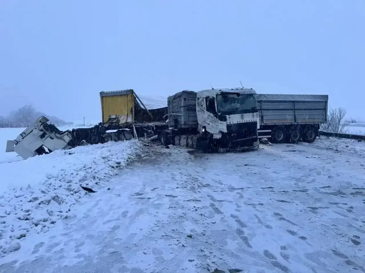 📷 Последствия дневного ДТП между Троицкой и Новотроицкой с участием двух фур. Подробностей нет.