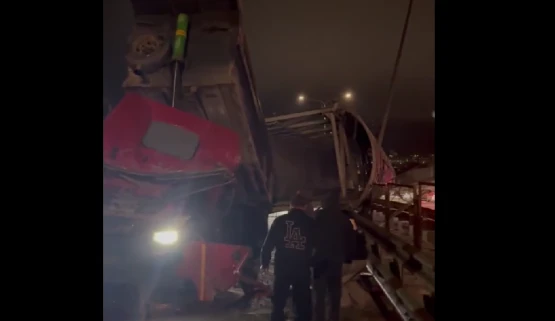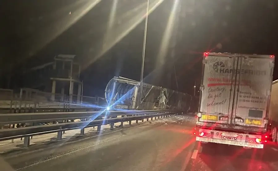 Грузовик снес надземный пешеходный переход на трассе М4 «Дон» в Каменске