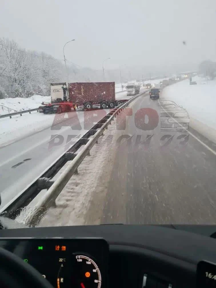 📷 Только-что развернуло фуру, собирается пробка .