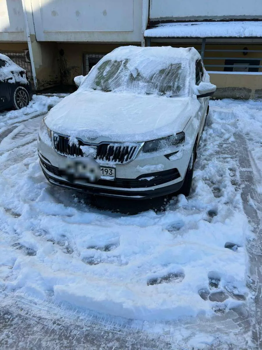 В Краснодаре, по адресу 2-я Целиноградская, дом 3 произошёл инцидент: на припаркованную машину упала глыба льда.