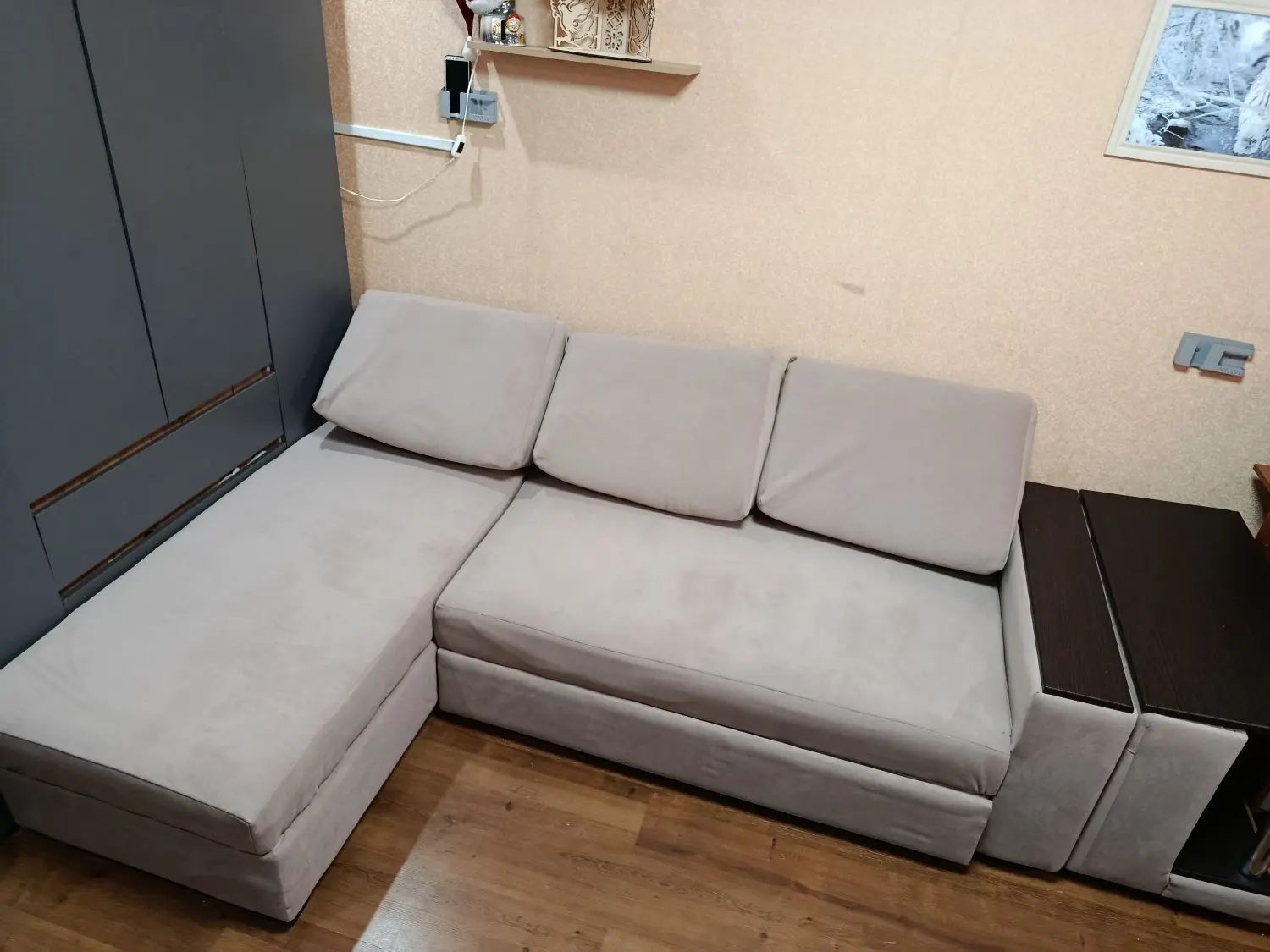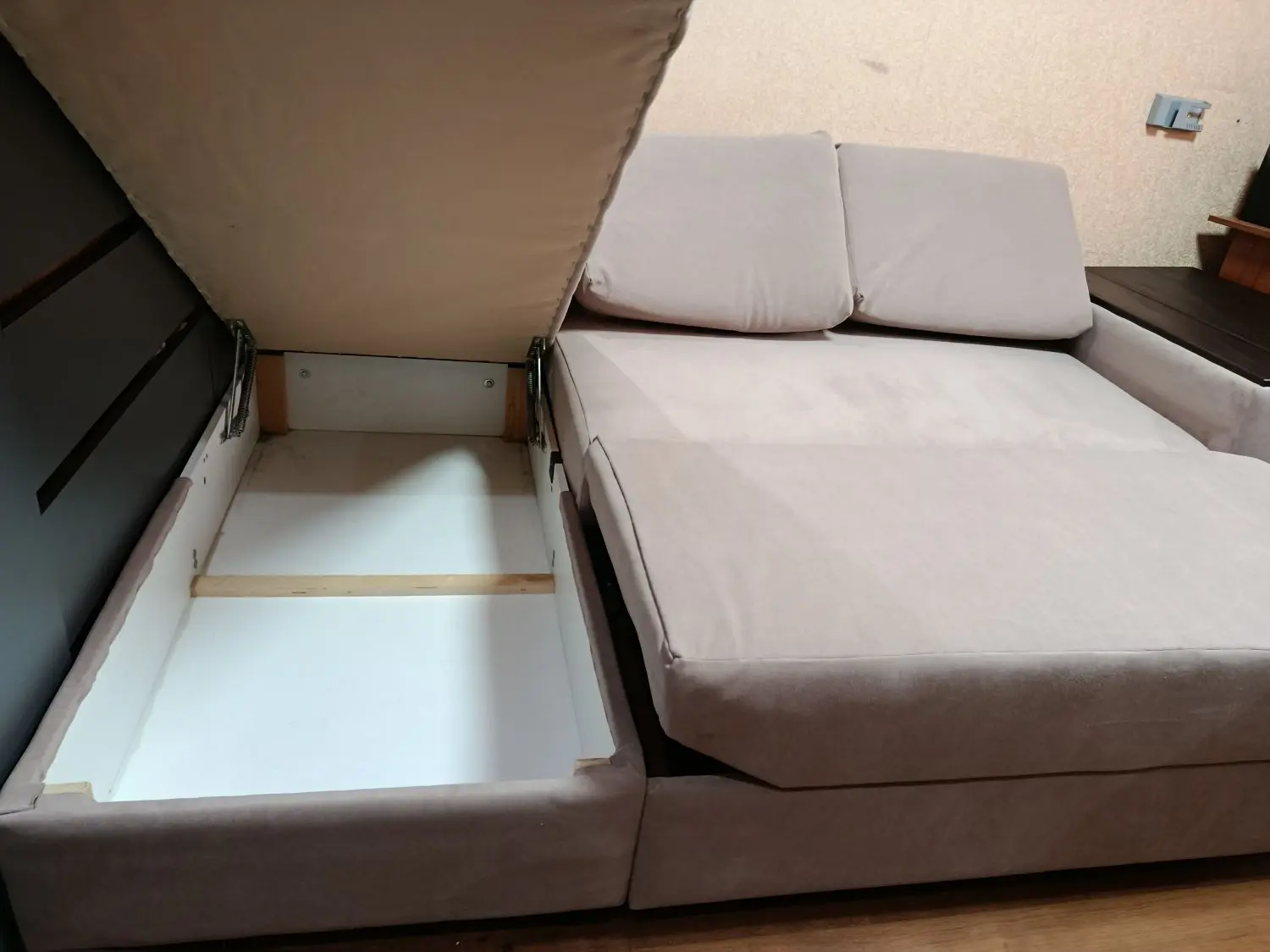 Подушки,ниша для белья,один из подлокотников как барная стойка