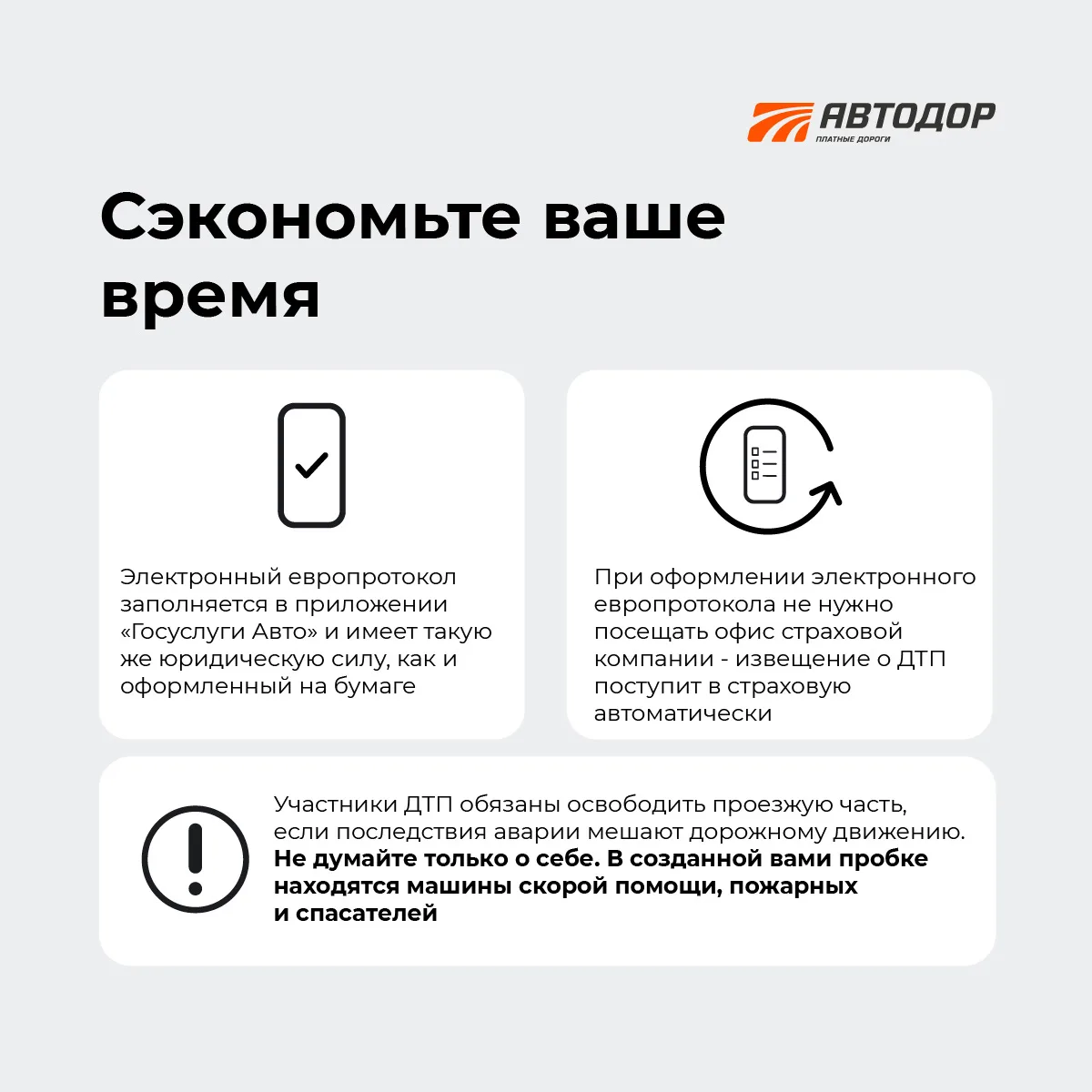 Если ДТП произошло на сети трасс «Автодор», вызывайте аварийного комиссара по номеру *2323.