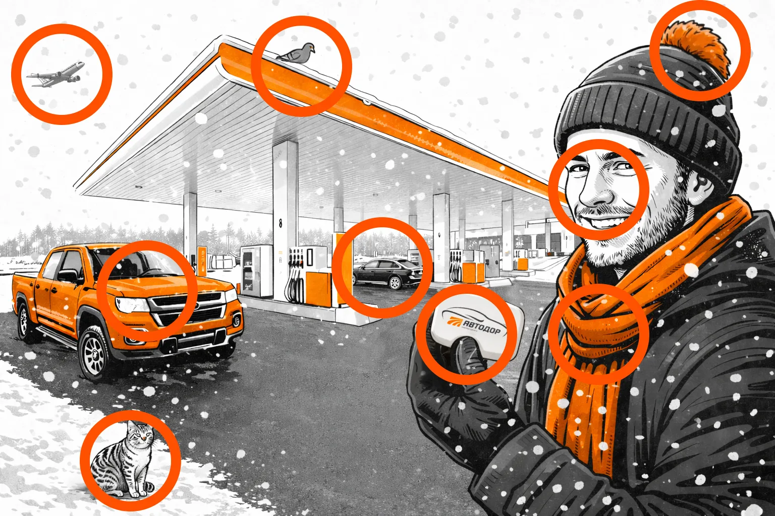 Зимой поездки вдоль сети трасс «Автодор» становятся особенно атмосферными. Вас встречают заснеженные пейзажи, уютные огни фонарей и теплое гостеприимство многофункциональных зон сервиса.
