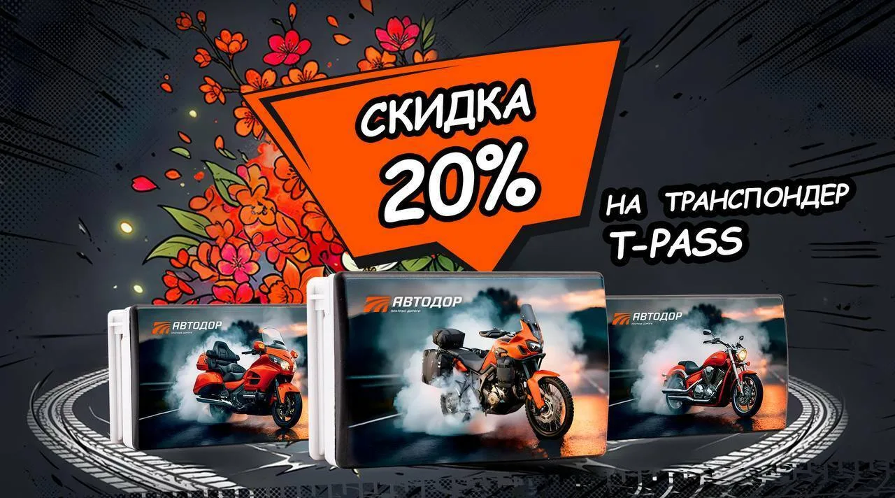 Кроме того, для всех, кто ценит скорость, свободу и комфорт в дороге, доступен специальный комплект: лимитированный транспондер T-pass вместе с держателем для мотоцикла по специальной цене 5000 рублей.