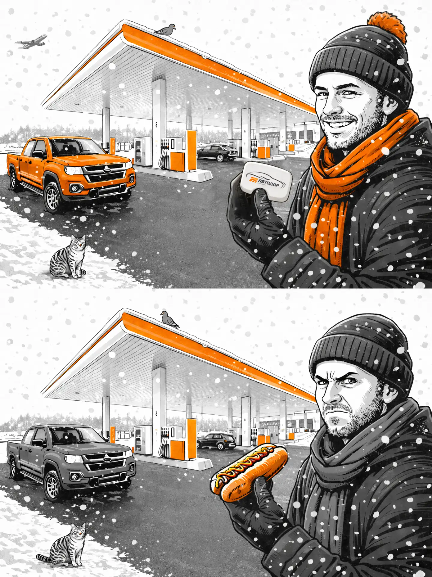 Между этими картинками 9 различий, а между вежливым водителем и водителем- эгоистом - всего одно - нежелание создавать очередь на АЗС.