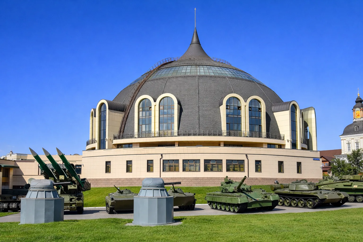 Его архитектурный образ вдохновлен древнерусскими доспехами, а внутри собрано более 14 тысяч экспонатов, от средневековых мечей до современных ракетных комплексов.