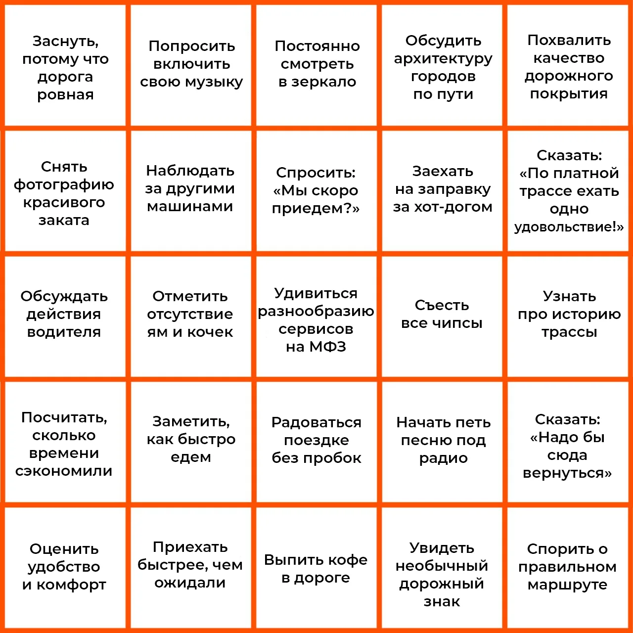 Едете на пассажирском сиденье? Предлагаем с пользой и азартом и сыграть в дорожное БИНГО.