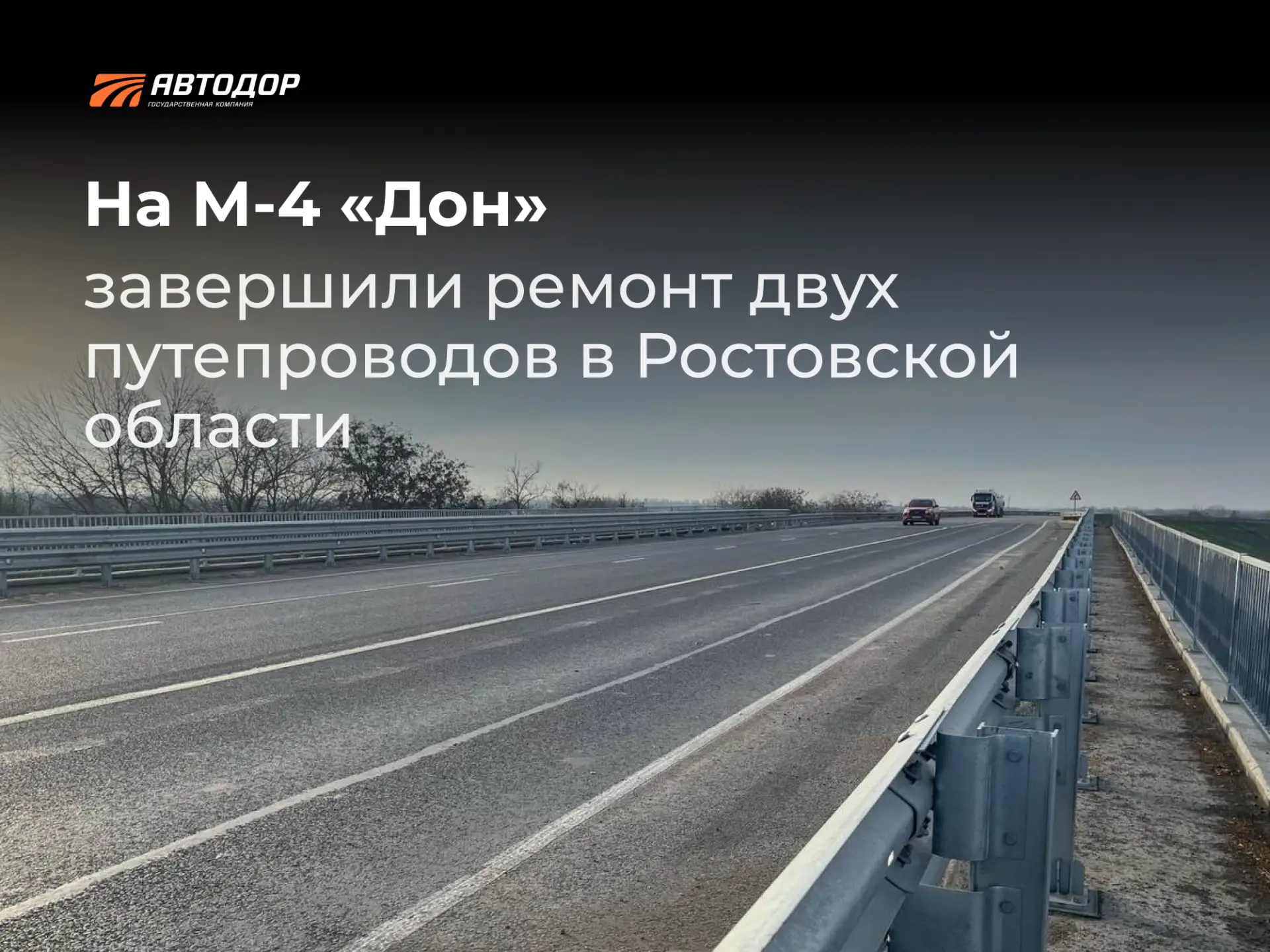 ✅ В Ростовской области завершён ремонт путепровода на 1062 км альтернативного направления трассы М-4 «Дон» и на 1084 км скоростного участка.
