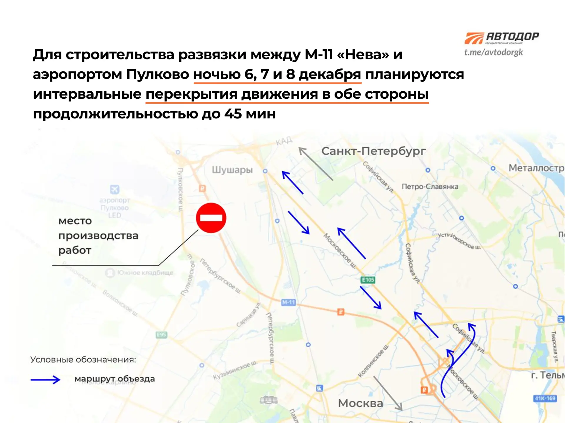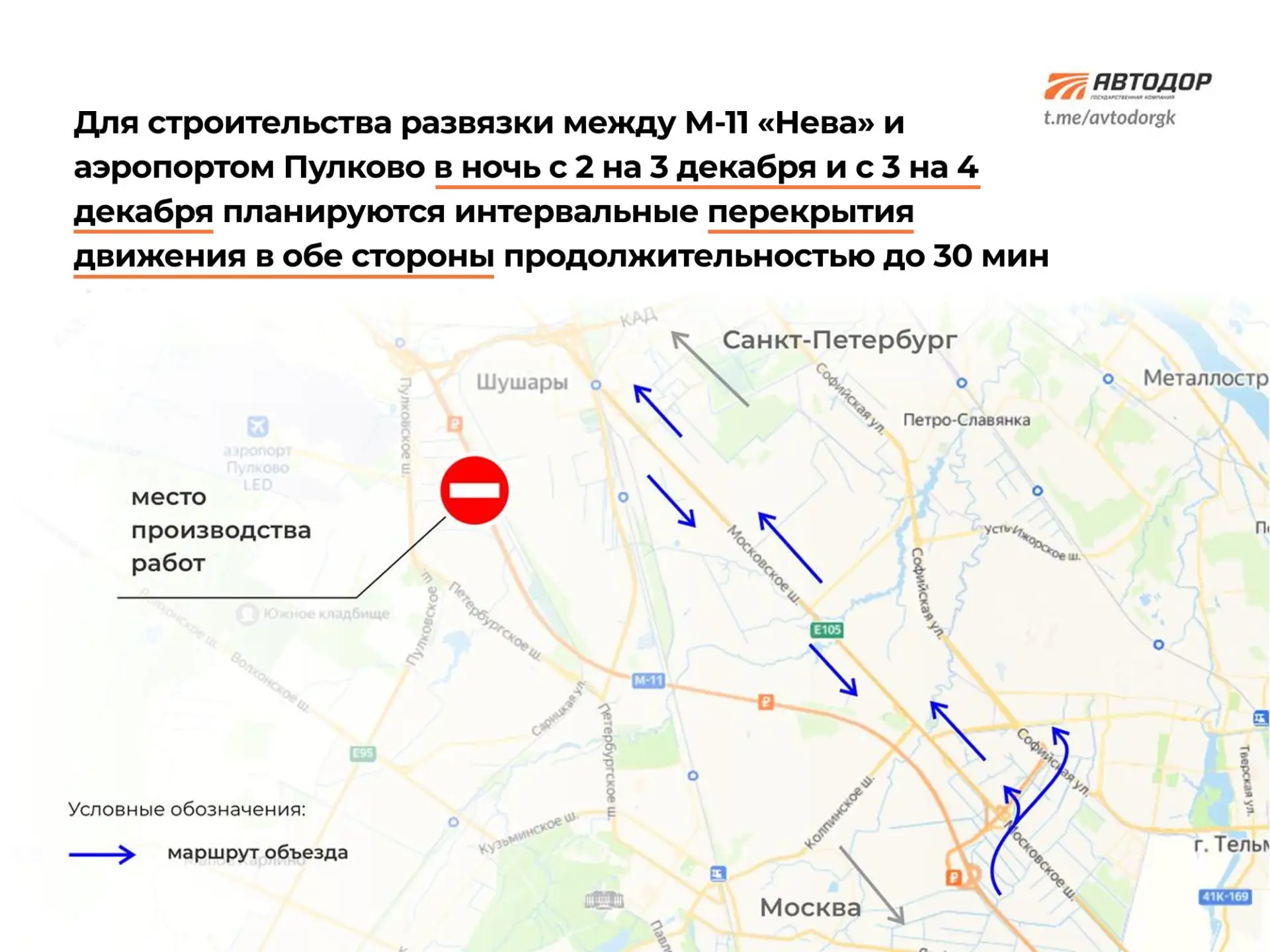🚗 При необходимости можно объехать участок дорожных работ на М-11 «Нева» по трассе М-10.