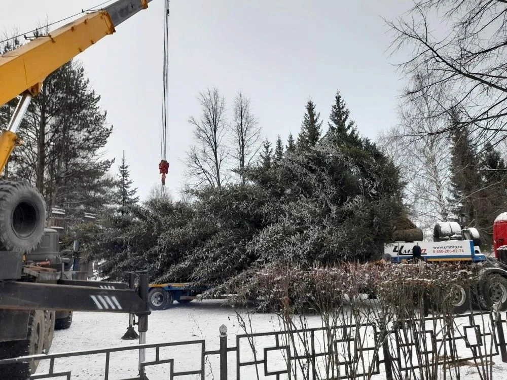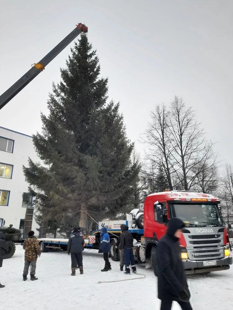 🌲Сегодня на Пионерской площади установили ёлку. Пушистая красавица прибыла с территории «БелМашЗавода».