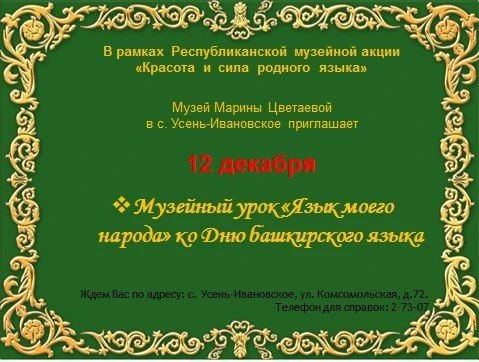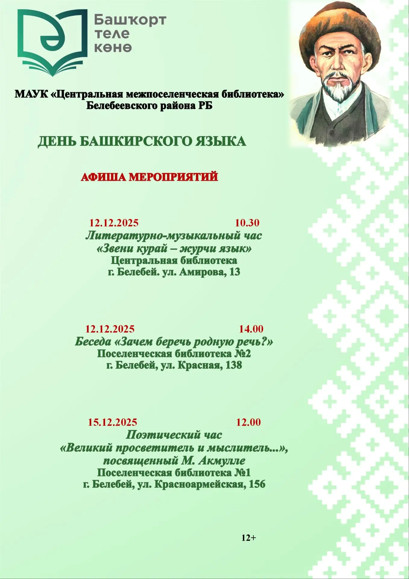14 декабря вся республика отмечает День башкирского языка, установленный Главой Республики Башкортостан в 2019 году с целью сохранения и развития башкирского языка.