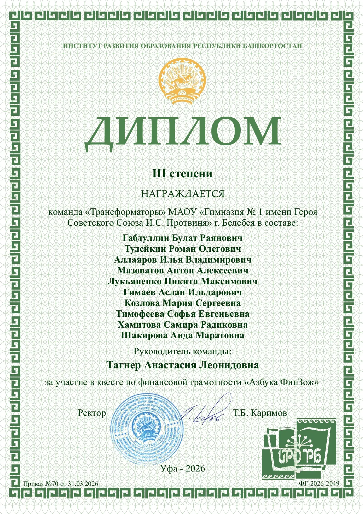 Поздравляю спортсменов и их наставника Винера Абзалова с высокими результатами! Желаю дальнейших спортивных успехов и новых достижений.