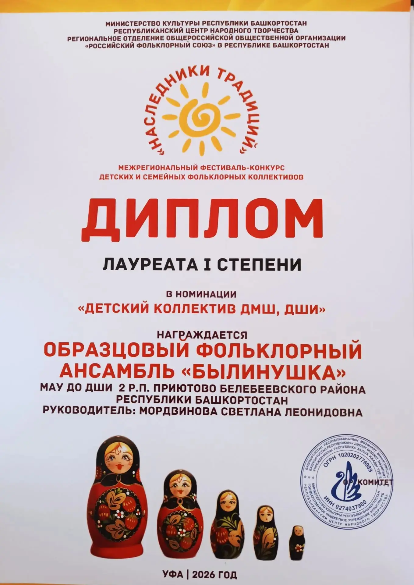 🎉Еще один успех на Межрегиональном фестивале татарской культуры "Рух. Дәрт. Мон".