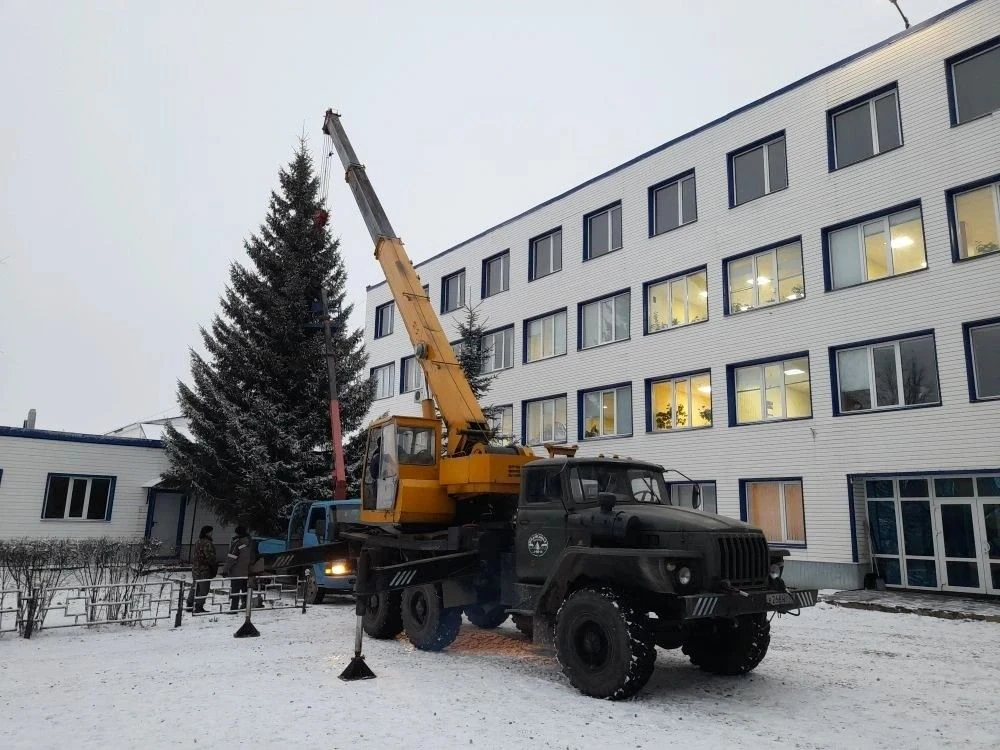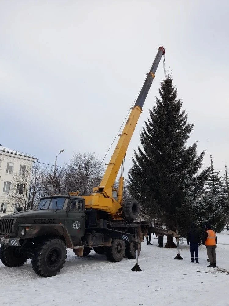 Работа кипит. Работники МБУ «Благоустройство г.Белебей» привезли и установили её на площади. Трал для транспортировки предоставил ООО «Прогресс», автокран – «Белебеевский водоканал», автогидроподъемник – ООО «Белтранссигнал».