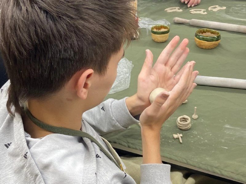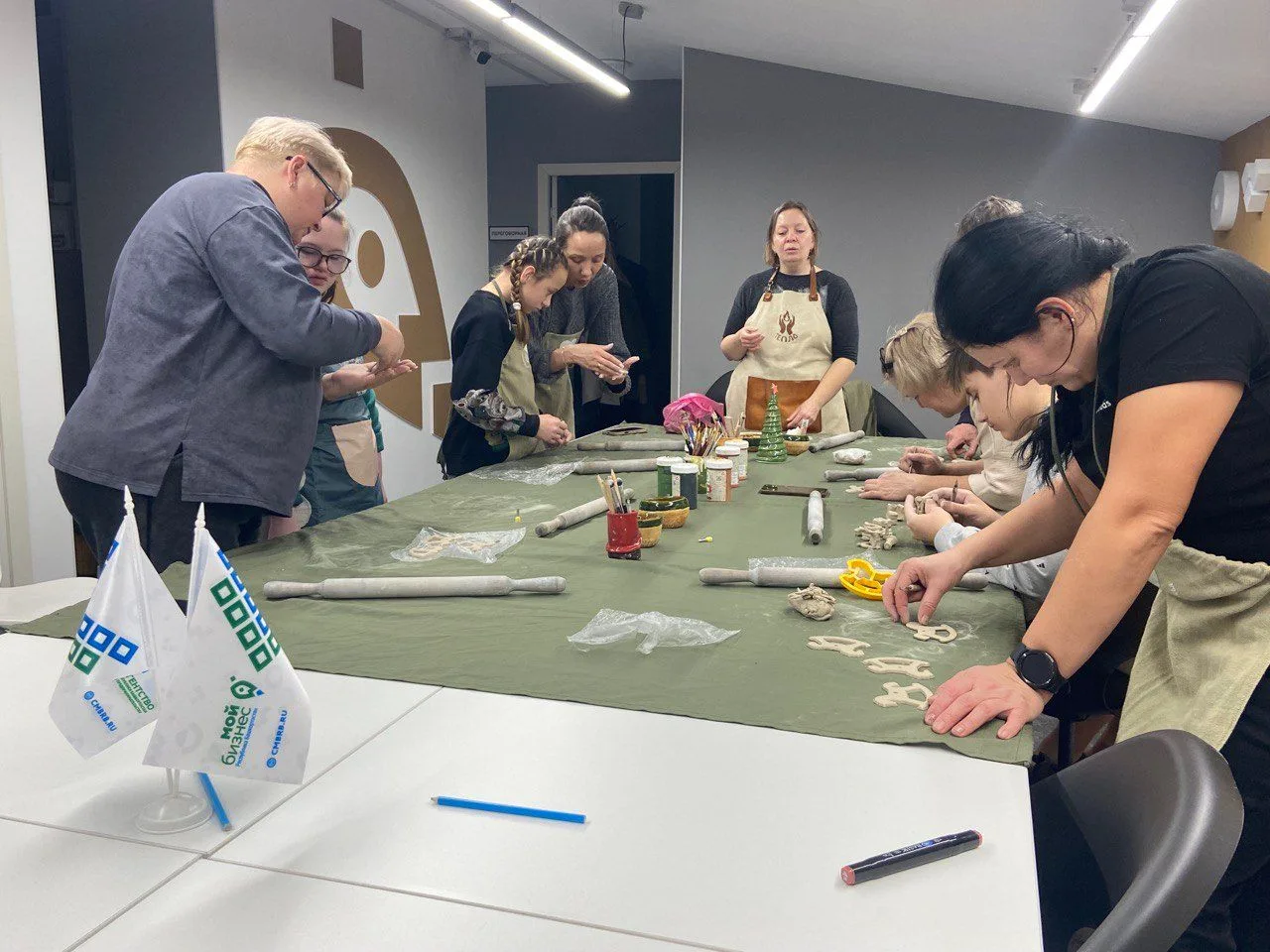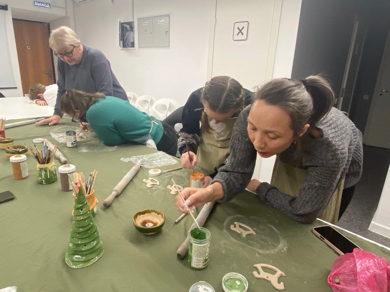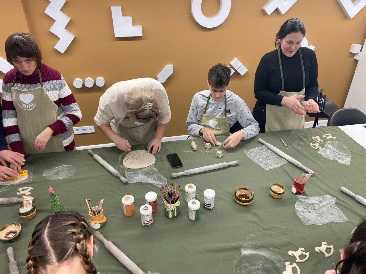 Под руководством предпринимателя из гончарной мастерской Алисы Лисиной ребята своими руками создали ёлочные украшения из глины - символ года 2026.