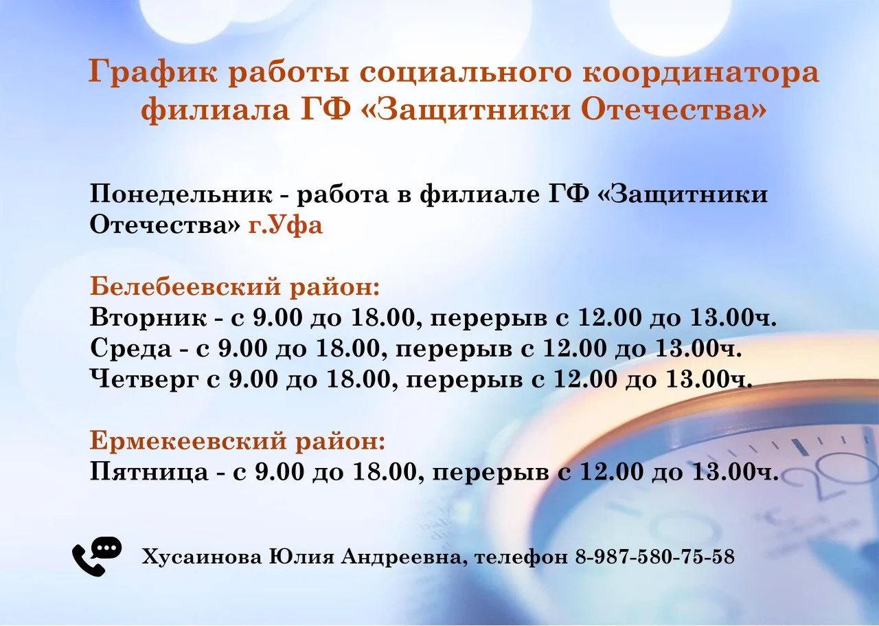 📍В Белебеевском районе работает филиал фонда "Защитники Отечества". Работу ведет социальный координатор Юлия Андреевна Хусаинова. Обращайтесь по телефону📞: 8-987-580-75-58