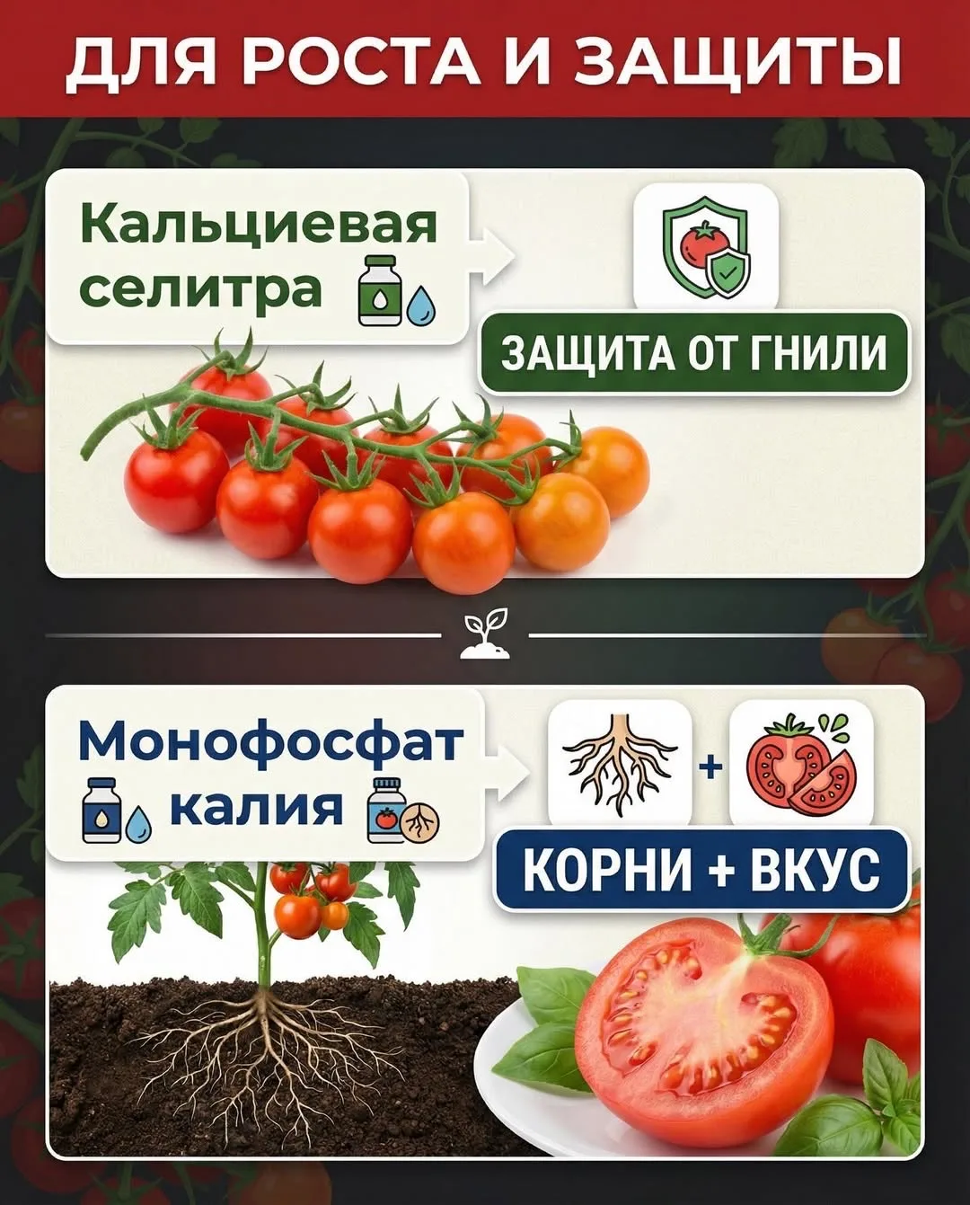 ✔ Кальциевая селитра — защита от гнили, крепкие растения