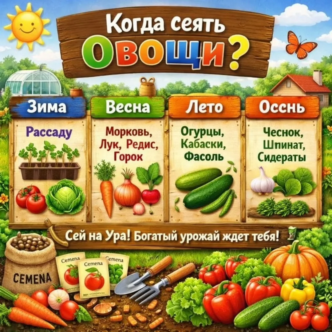 🥕 Когда сеять овощи в 2026 году? Сохраняйте шпаргалку!