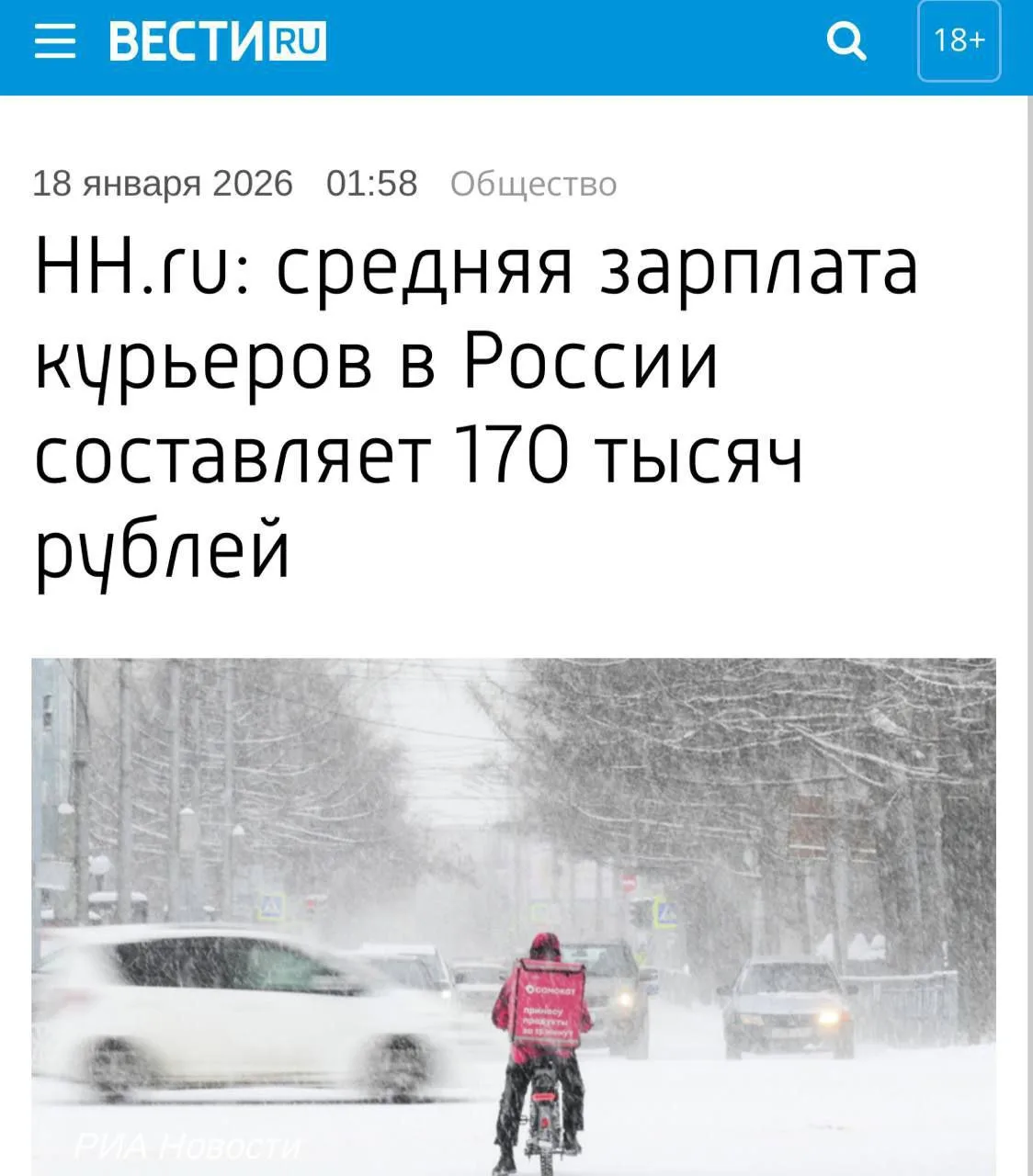 Как сообщили в пресс-службе портала hh, средняя зарплата для курьеров в России за последний месяц составил 170 тыс.руб.