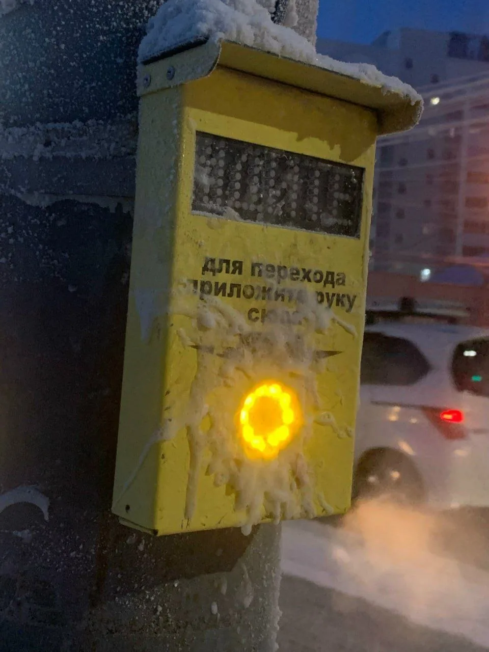 Оплевали сенсор на пешеходном переходе возле остановки "Детский центр Айхал".