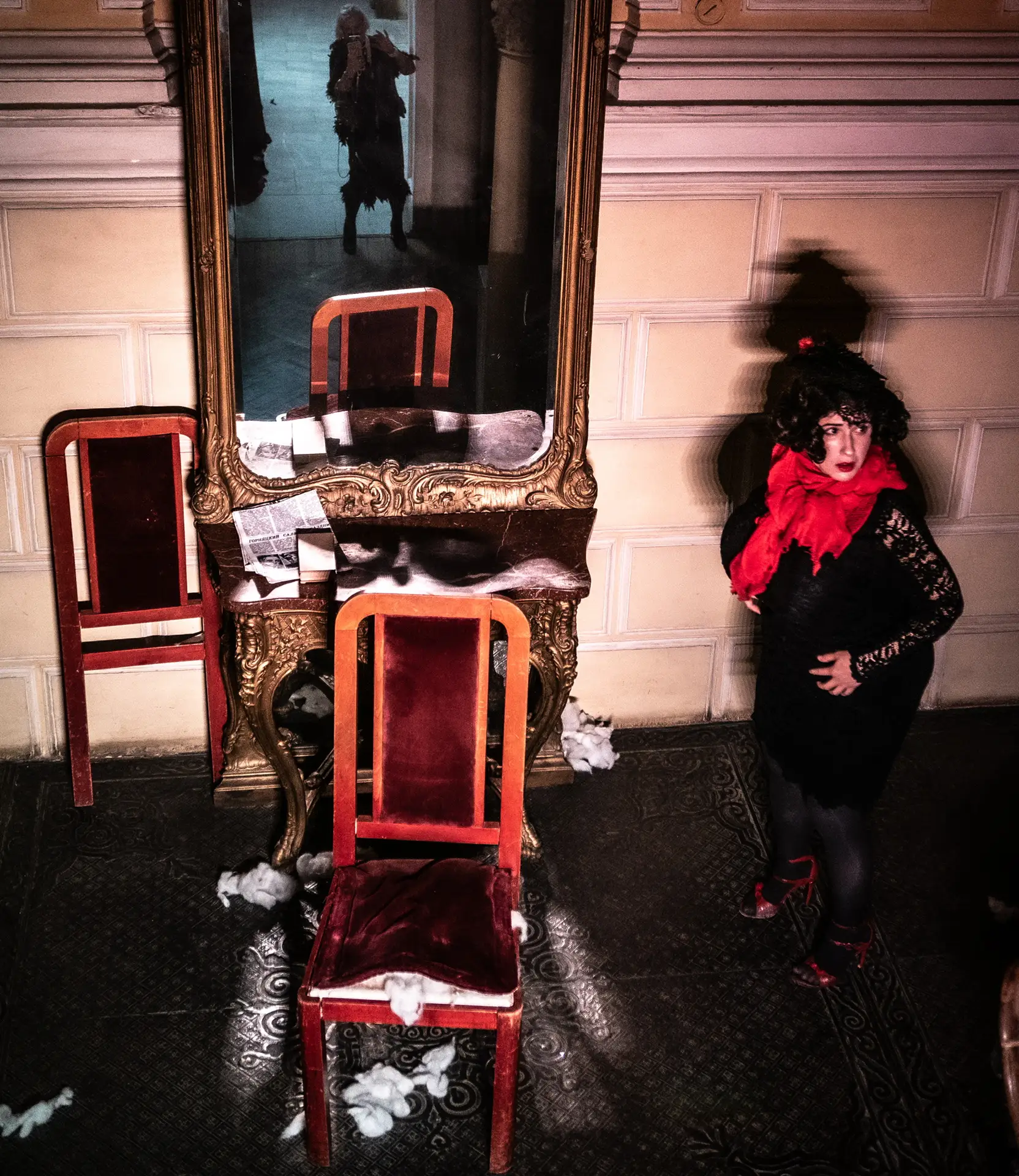 Я не только наблюдала за спектаклем, но и сама стала участницей поисков сокровищ, спрятанных в стульях - реальных украшений с выращенными бриллиантами.