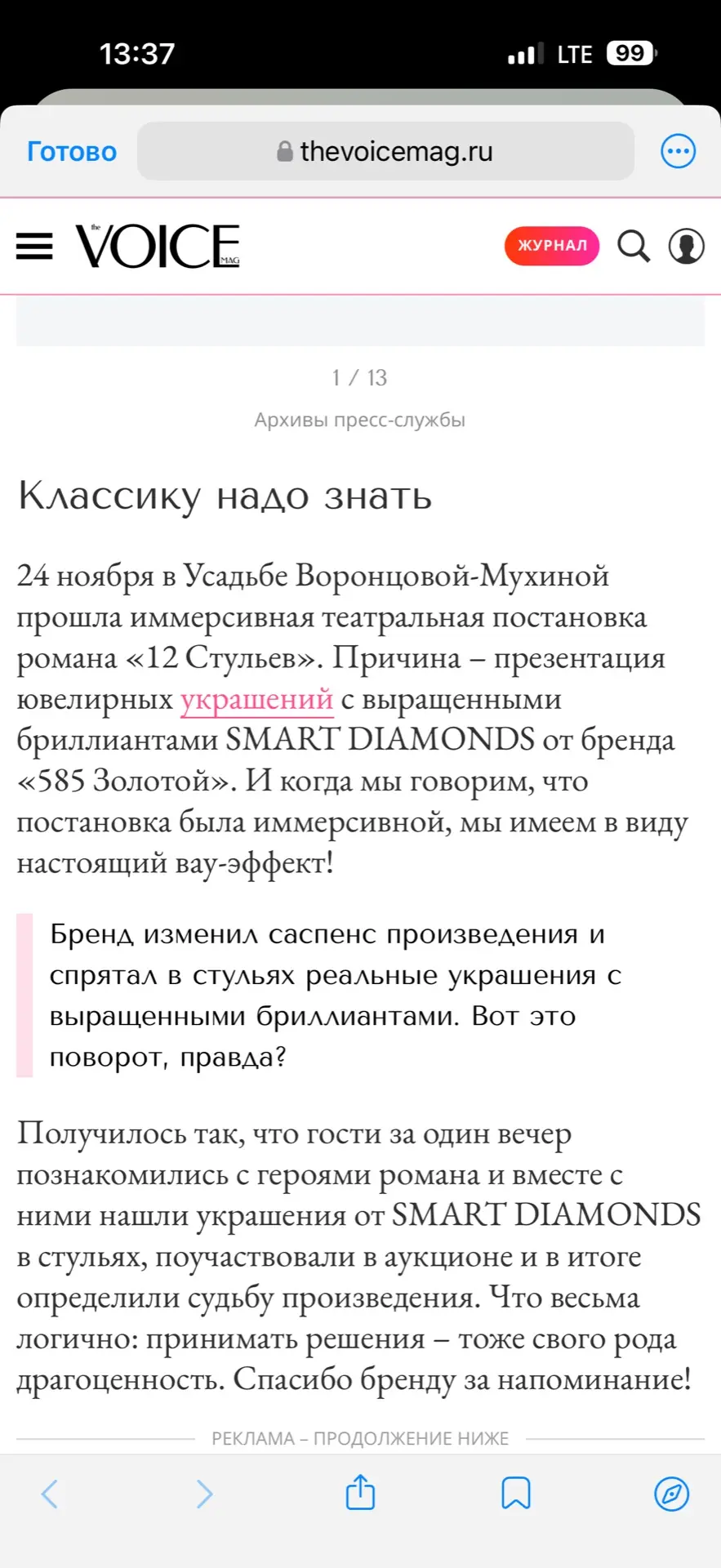 Я побывала в усадьбе Воронцовой-Мухиной, где прошла иммерсивная постановка «12 стульев», организованная брендом ювелирных украшений SMART DIAMONDS - это новый бренд от 585 Золотой.