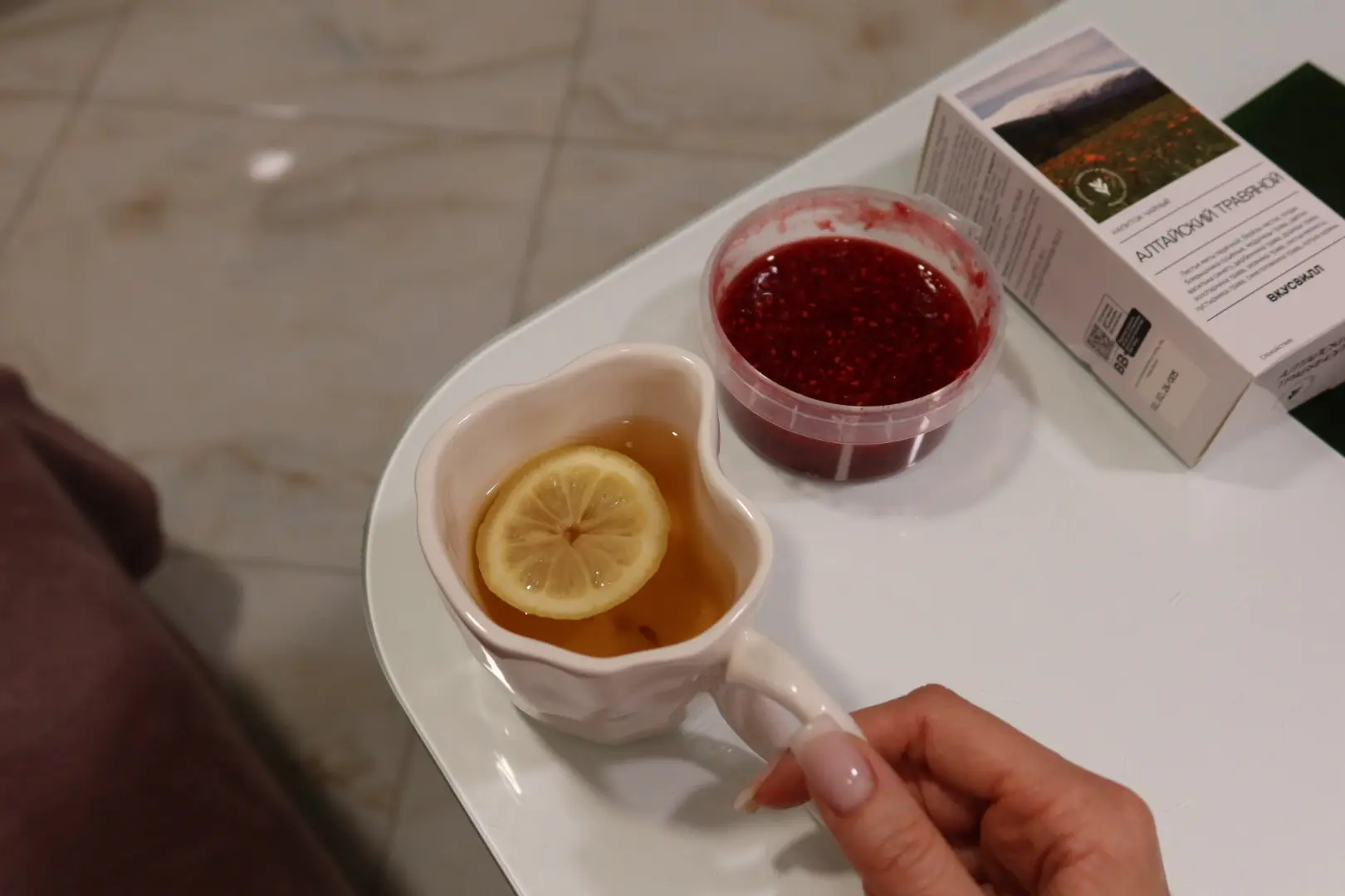Черного или зеленого чая много нельзя, и я нашла во ВкусВилл этот алтайский травяной чай. Он ароматный, и его можно на ночь, так как нет кофеина.