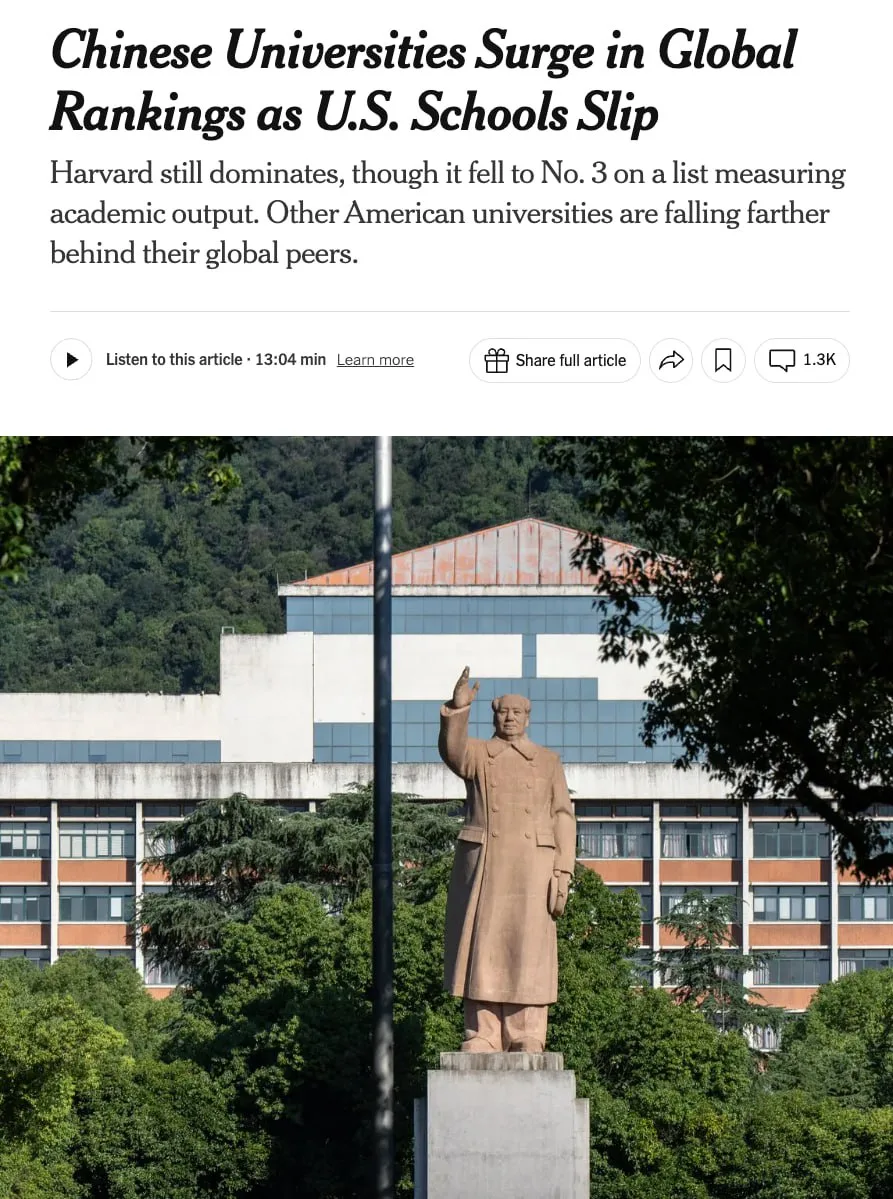 🔥 Китайские вузы вытеснили Гарвард на 3-е место в рейтинге лучших университетов мира.